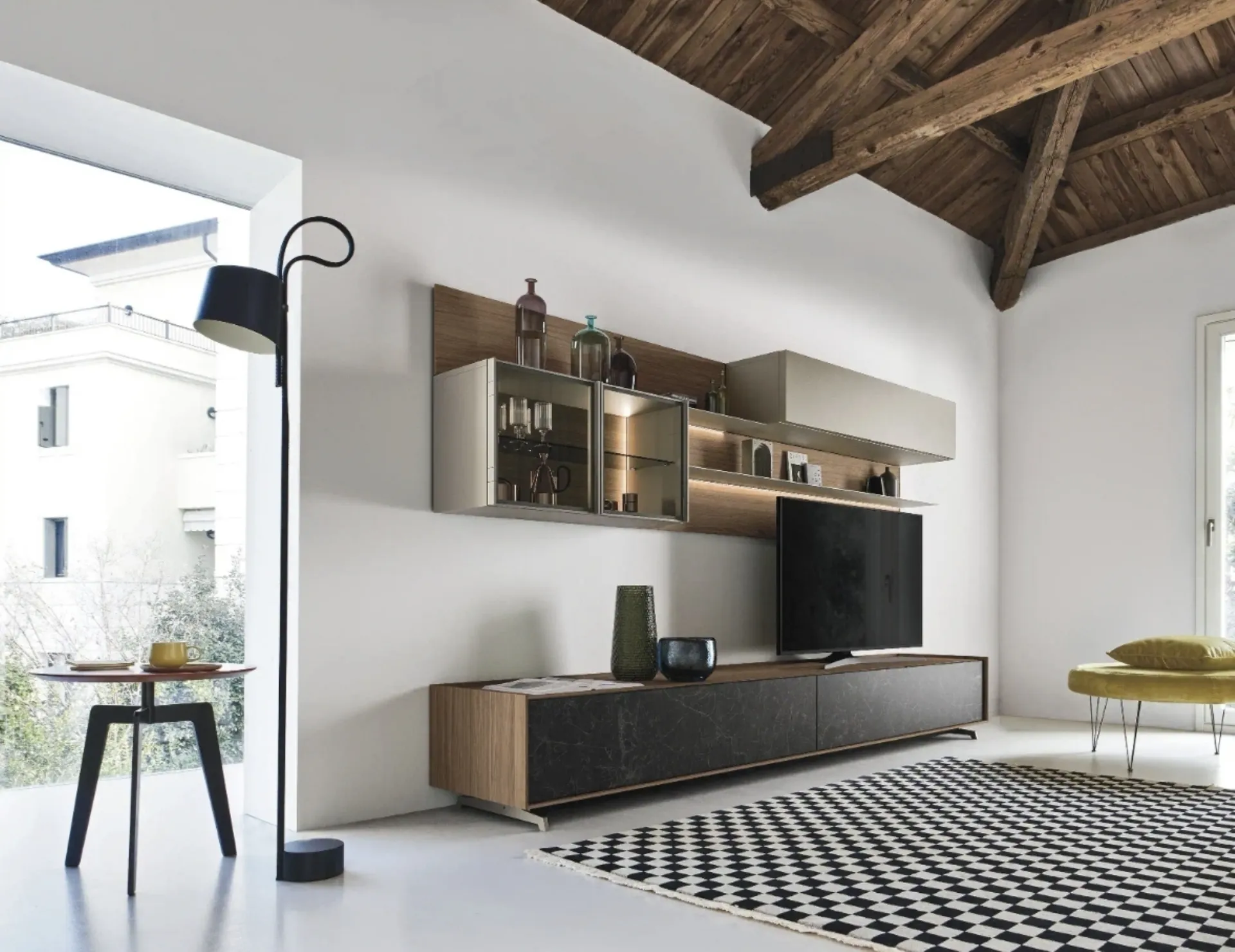 As the living room should be a well-organized and beautiful space, some beautiful and functional furniture such as Wall Units are essential. Let yourself be charmed by a rich range of furniture for the living room and you will find the wall unit that suits you. Wooden living room furniture with modern lines like the model in the photograph are truly versatile and capable of furnishing the living room by optimizing every corner. Sangiacomo offers original models of living room furniture, different in style and configurations, finishes and accessories: discover in our store the Home Furnishings of the best brands.