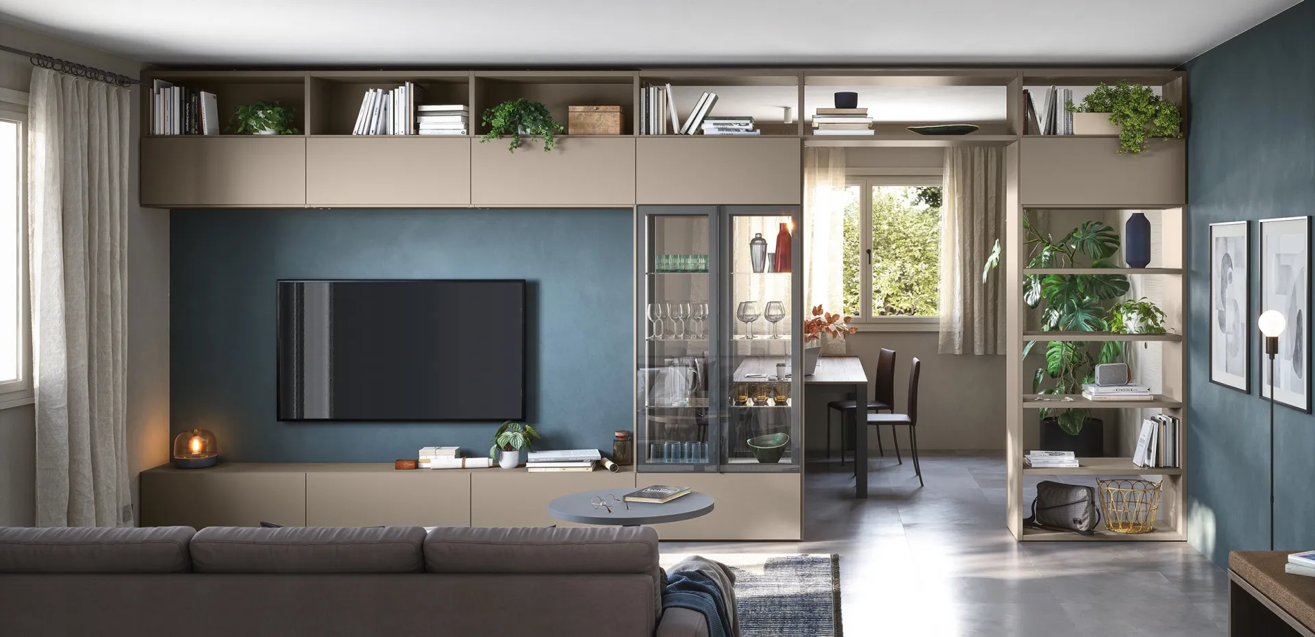 Cinquanta3 offers unique models of living room furniture, different in style and configurations, textures and elements: discover in our showroom the Home Furnishing from the best manufacturers. Since the living room should be a spacious and visually appealing space, some beautiful and functional furniture like the Wall Systems are essential. The Wall System 04D by Cinquanta3 in the photo is one of the most original furnishing solutions on the market: its great modularity and different design opportunities make it practical and sophisticated. The melamine living room furniture with modern lines, like the model in the photo, are truly versatile and capable of enhancing every corner of the living area. Get inspired by a wide range of furniture for the living area and you will find the wall system that suits your needs.