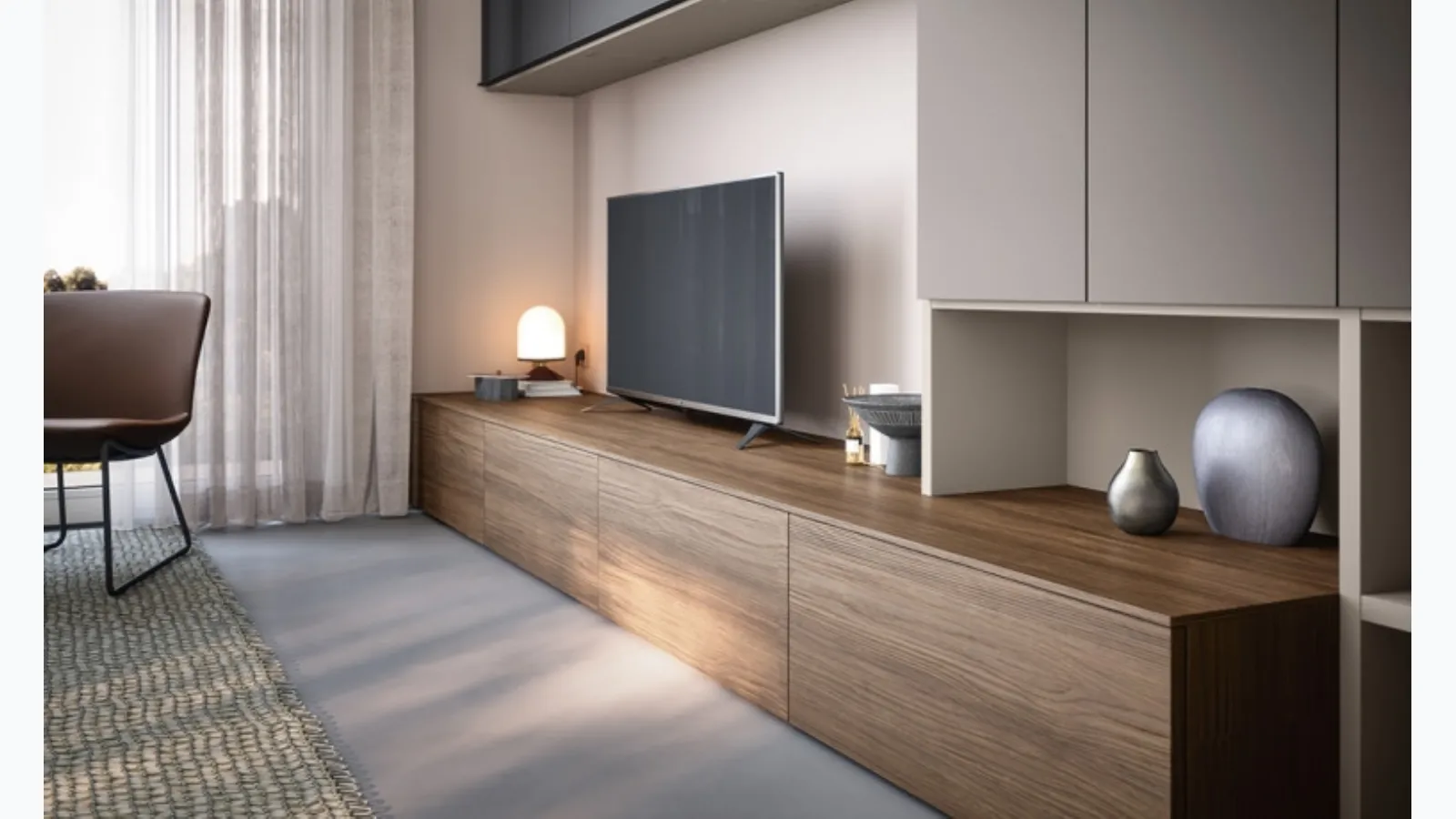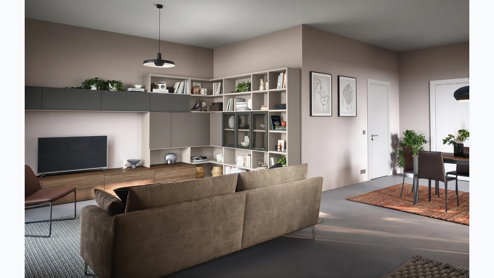 We are dealers of melamine Home Furnishings from the best manufacturers: contact us and find out more! By studying the latest and personal housing needs, we select only the most original and interesting furniture solutions on the market, customizable according to individual requests. The "05D Equipped Wall" by Cinquanta3 becomes the protagonist in rooms of all kinds thanks to its modular components and the possibility to select finishes, materials, colors, configurations, and much more. Modern Wall Units offer the opportunity to recreate different atmospheres in the living room, freeing up space and making the most of every corner. Discover our line of Cinquanta3 brand furniture for the living room and you will be able to decorate your home with a unique style and the storage capacity you need.