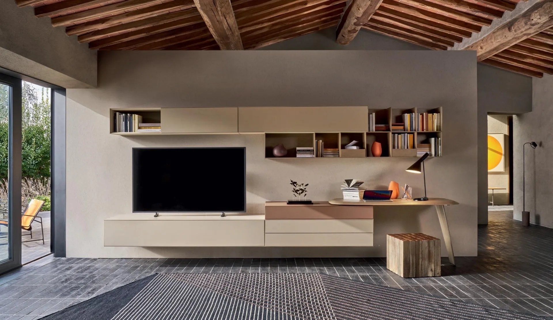 This solution represents all the quality that the brand ensures thanks to years of experience and great dedication in the field of furniture and design. Even in a not particularly generous living room, this type of furniture manages to organize spaces optimally, maximizing every corner and guaranteeing great modularity typical of modern solutions. Part bookshelves, part containers and display units: Wall Units are ideal for arranging a dynamic and operational space. The Sangiacomo Domino 08 Wall Unit in the photograph, made in matte lacquer, solves the most particular housing needs in terms of style and space without sacrificing aesthetic research.