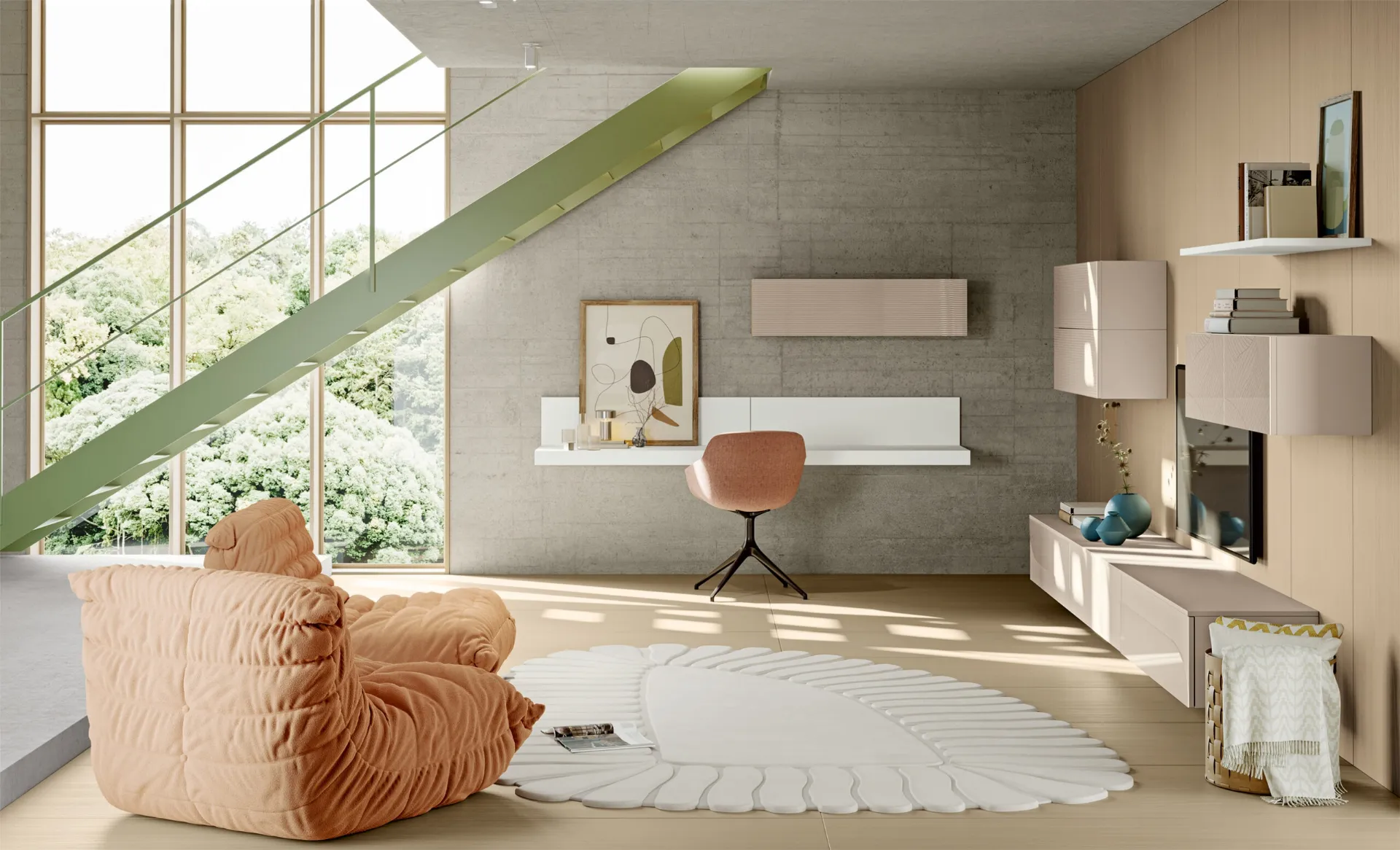 The Eclectic Wall Unit EG002 by Colombini Casa in the image has great modularity and different characterization possibilities: discover the wall unit shown here and contact us for more information and quotes. Whether wall-mounted or freestanding to better organize an open space, the most exclusive furnishing compositions on the market decorate the living room by optimizing the available space. To meet everyone's diverse housing needs, the brand offers its customers a rich catalog of modern and highly functional Wall Units characterized by refined aesthetics.