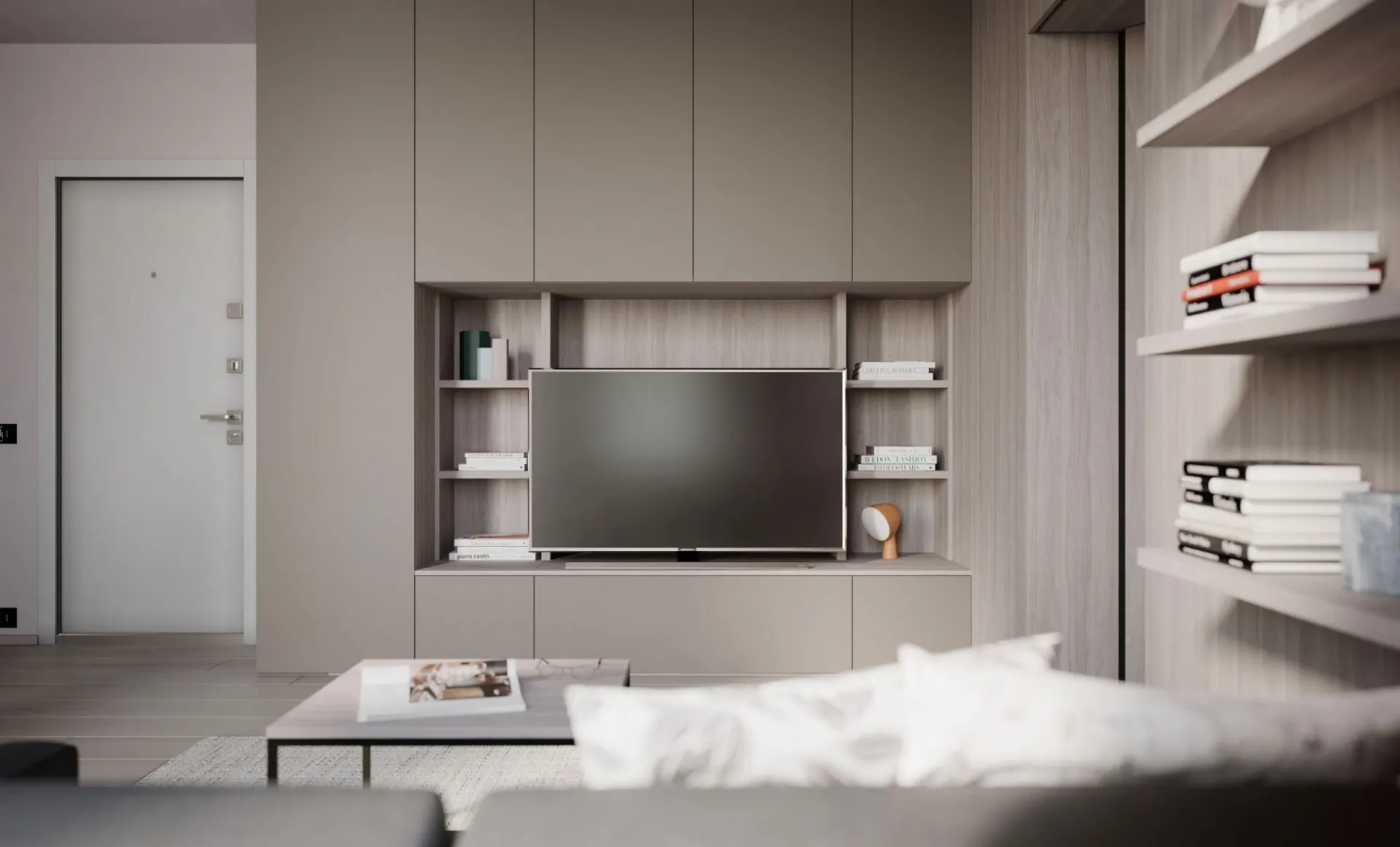 In recent times, Wall Units have assumed a fundamental role in terms of Home Furnishing: they are multifunctional and space-saving furnishings that can always be custom-made. This wall unit is one of the most exclusive solutions by the brand and will allow you to furnish the living room according to your personal housing needs. Through a dynamic and operational interplay of interlocking, overlapping, open shelving or closed compartments, modern Wall Units furnish the living space, making the most of every available space. For information and estimates on the Tortora and Ossidato Living Wall Unit by Nardi Interiors in the photograph, contact us! The model shown in the photo is made of melamine, but thanks to a wide variety of finishes, shades, and configurations, it can adapt to spaces of all types.