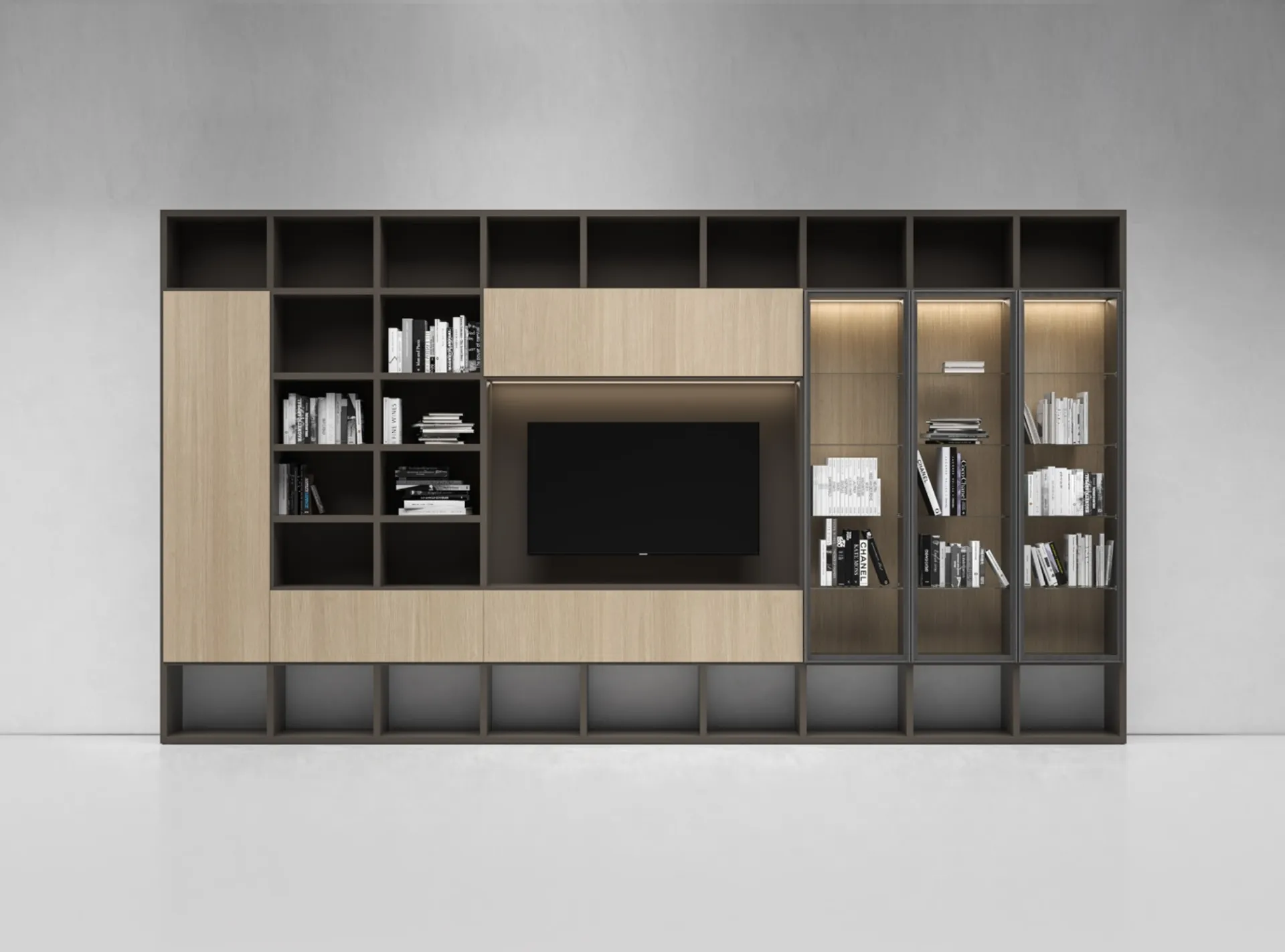 If you are looking for space-saving and customizable furniture, contact us and discover more about the best manufacturers' Home Furnishings. The Presotto Pari & Dispari C Wall Unit in the photo, with melamine finish, solves the most personal housing space and style issues without sacrificing stylistic research. Even in a not so spacious living room, this type of furniture manages to optimize spaces by making the most of every corner and ensuring great modularity typical of modern solutions. A bit of bookshelves, a bit of containers and displays: Wall Units are ideal for equipping a dynamic and operational space.