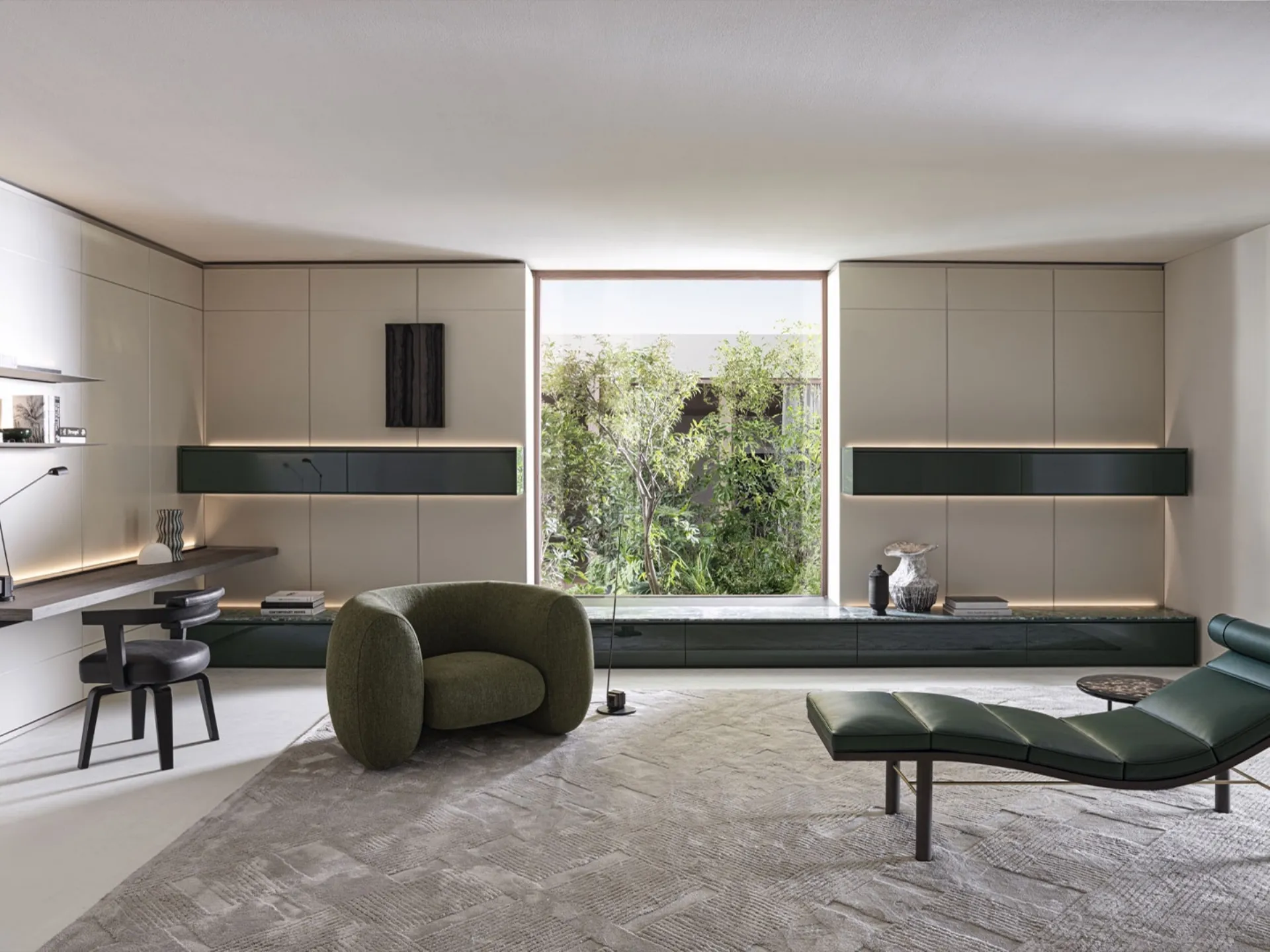 This equipped wall is one of the solutions offered by the company and will allow you to furnish the living room according to the most specific housing needs. For information and quotes on the Pass Word Evolution 01 Wall Unit by Molteni & C in the photograph, contact us! The proposed model is made of glossy lacquer, but thanks to a wide choice of textures, colors, and shapes, it can adapt to all types of styles. Wall units have become essential in the living area of our homes: they are multifunctional and space-saving furniture that can always be custom-made. Through a dynamic interplay of combinations between open components or closed compartments, modern wall units furnish the living room optimizing every space.