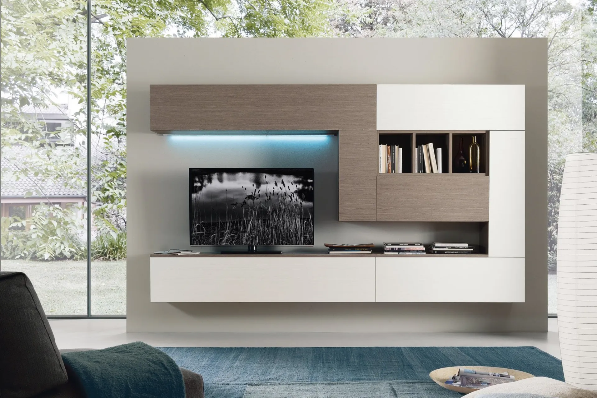 The living room furniture in melamine with modern lines like the model in the picture are truly versatile and capable of furnishing the living area, enhancing every corner. The Suspended Equipped Wall Spot Cindy 01 by S75 in the picture is one of the most original furnishing solutions on the market: maximum modularity and the various design opportunities make it beautiful and of great quality. Let yourself be fascinated by a rich catalog of furniture for the living area and you will find the equipped wall that suits you. Since the living room must be a well-organized and aesthetically valuable space, some beautiful and practical furniture such as Equipped Walls are essential. S75 offers new models of living room furniture, different in style and configurations, textures and elements: discover in our store the Furniture for the Home of the best manufacturers.