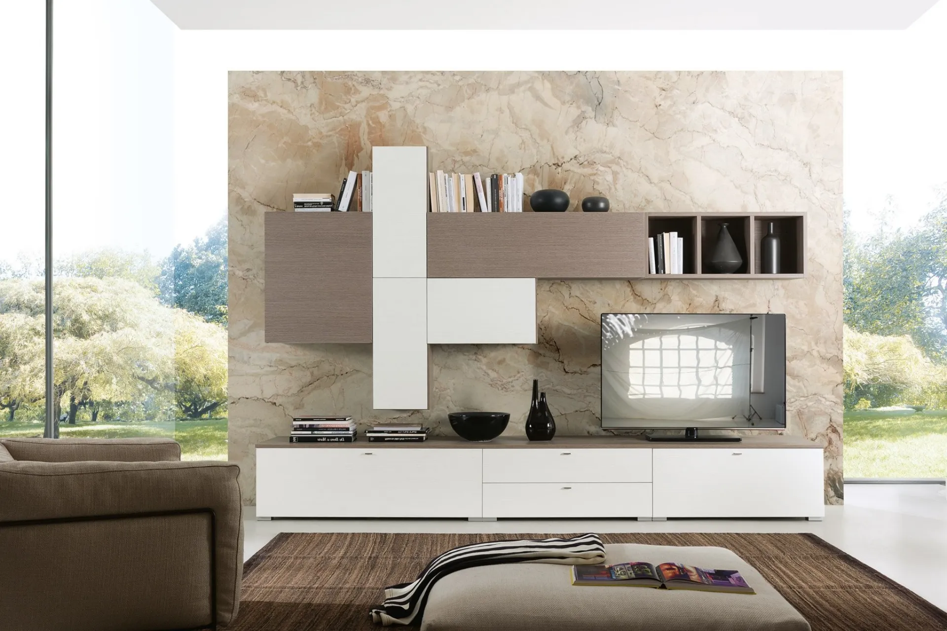 The Spot Cindy 02 wall unit by S75 in the photograph is one of the most beautiful furniture solutions on the market: customizability and different design opportunities make it beautiful and of high quality. Since the living room should be a comfortable and visually appealing space, some beautiful and functional furniture like wall units are essential. S75 offers innovative models of living room furniture, different in style and shapes, textures, and elements: discover in-store the best brands' home furnishings. Melamine living room furniture with modern lines like the model in the photograph are truly versatile and capable of furnishing the living area to make the most of every corner. Let yourself be enchanted by a rich catalog of furniture for the living area, and you will find the wall unit that is right for you.