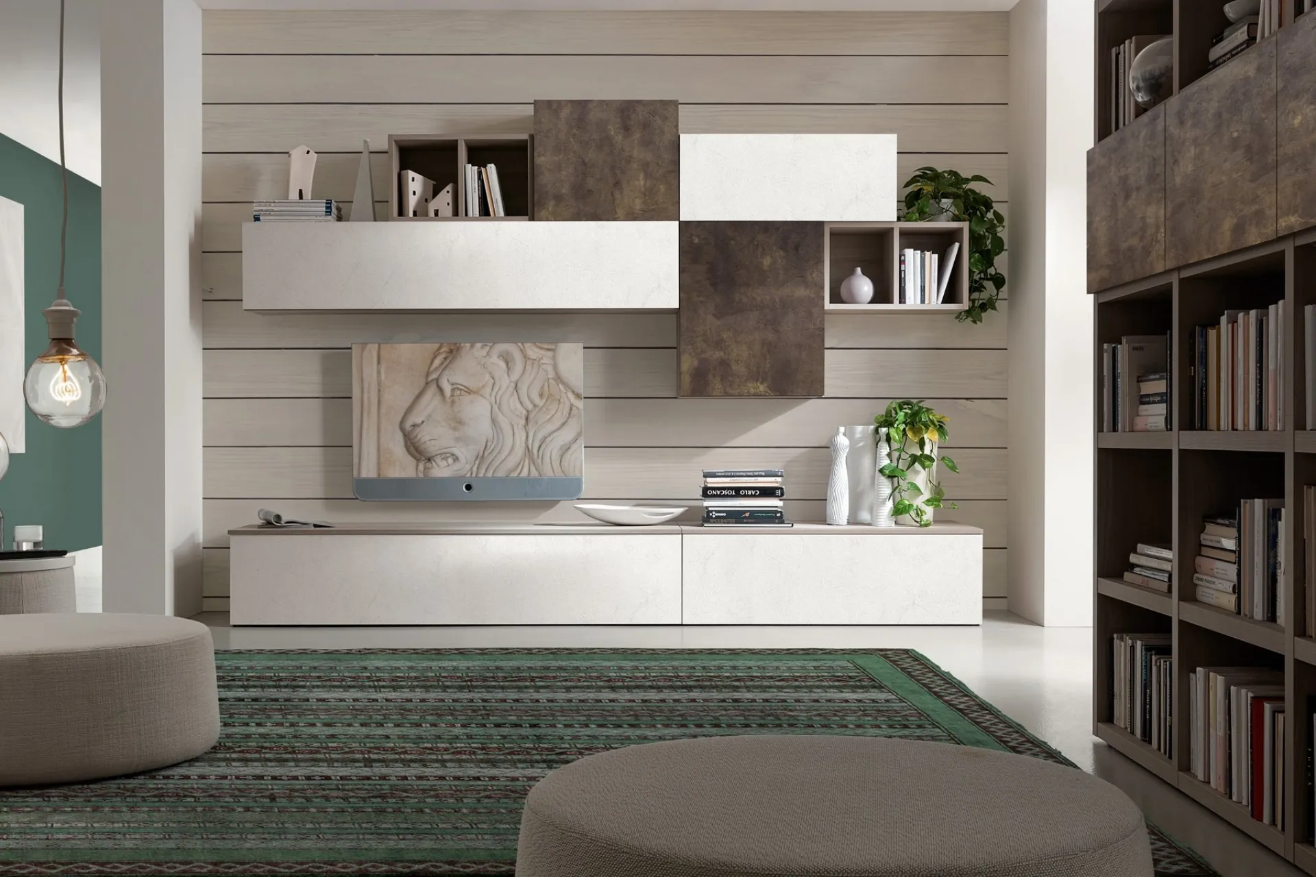 This wall unit is one of the signature solutions and will allow you to design the living area according to the most personal housing needs. For information and quotes on the Supreme City 03 Wall Unit by S75 in the photograph, contact us! The proposed model is made of melamine, but thanks to a wide choice of textures, colors, and configurations, it can adapt to styles of all kinds. Wall units have earned a fundamental place in the living area of our homes: they are multifunctional and space-saving furnishings always customizable. Through a dynamic mix of open components or closed compartments, modern wall units furnish the living space enhancing every area.