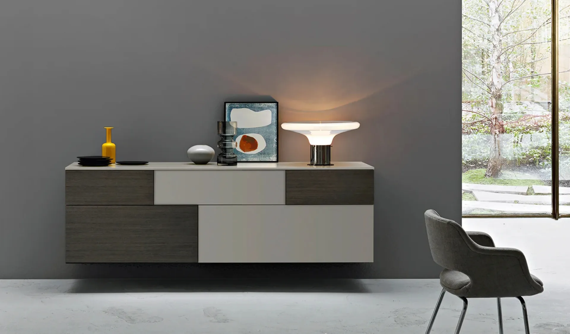 Fundamental to make your home truly functional and aesthetically pleasing, modern suspended furniture completes the spaces with the best results from an aesthetic point of view. The storage capacity of these modern Sangiacomo furniture pieces, like the one in the photograph, will ensure that you always have the space you need available. Having a multifunctional support surface in the living room, to store your items and make the rooms livable, is essential. Whether you intend to store everyday or decorative items, one of our high aesthetical value modern products will be the ideal choice for you. With us, you can see firsthand the most exclusive compositions with suspended lacquered furniture from the brand for the spaces in your home.
