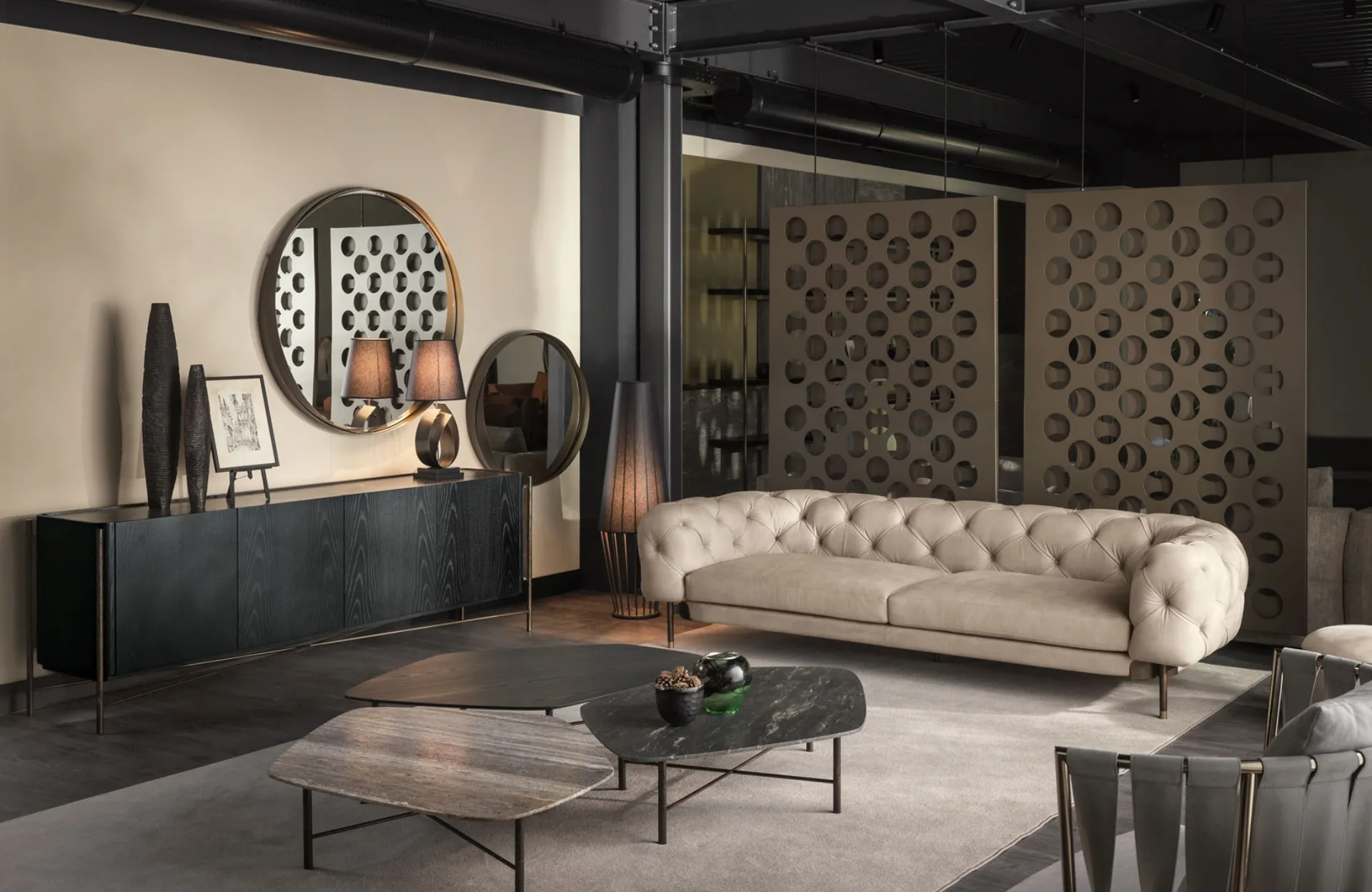 Our Living Rooms are designed to be matched with accessories of all kinds, such as coffee tables, lamps, and floor lamps or in combination with additional leather sofas. The Linear Sofa Atenae by Cantori: recreates a cozy and comfortable space in classic spaces of great personality. If you desire linear sofas and armchairs like the model in the photograph, characterized by volumes that invite you to enjoy your moments of rest. The collection of sofas from the brand in question offers several unique ideas for furnishing the living room with practicality, comfort, and style. The Cantori catalog offers various ideas for furnishing interiors with practicality and aesthetic value, putting your comfort at the center.