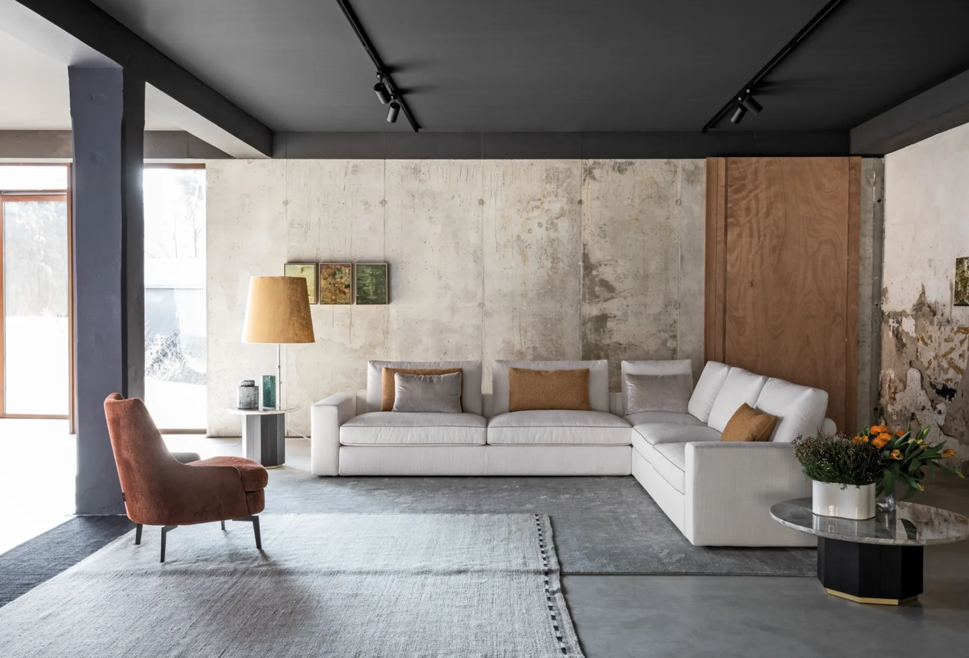 The brand's sofa series offers various original possibilities to customize the living room with practicality, comfort, and style. Flexteam's catalog offers many options to personalize the living space with practicality and aesthetic value, focusing on your comfort. The Flexteam Easy Norman corner sofa creates an intimate and comfortable space in modern and classy environments. Our sofas are designed to be paired with various accessories such as tables, lamps, and floor lamps, or combined with additional fabric sofas. If you want a corner sofa like the one in the image, characterized by volumes that invite you to spend your moments of relaxation.