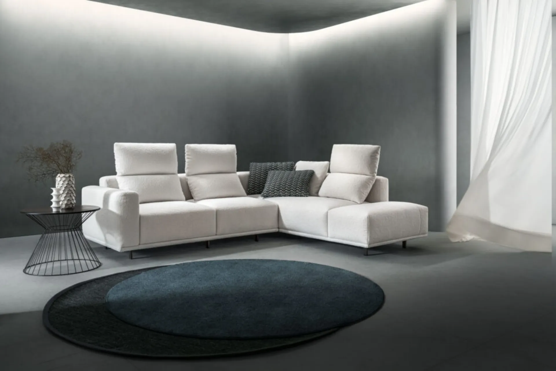 Samoa, a specialist in making sofas, has created an elegant and refined fabric covering for the model in the photograph. The living room is the focal point of the living area in every home, with upholstered furniture being elements around which to spend moments of rest and socialization. Discover a multitude of corner sofas from the best brands and optimize the living area you have always desired. Samoa's Ginny corner sofa: be inspired by our proposals of designer sofas and armchairs that can guarantee comfort, practicality, and design in your living room. Living rooms are a truly essential area of the living room, to be carefully arranged by placing sofas, armchairs, and ottomans.