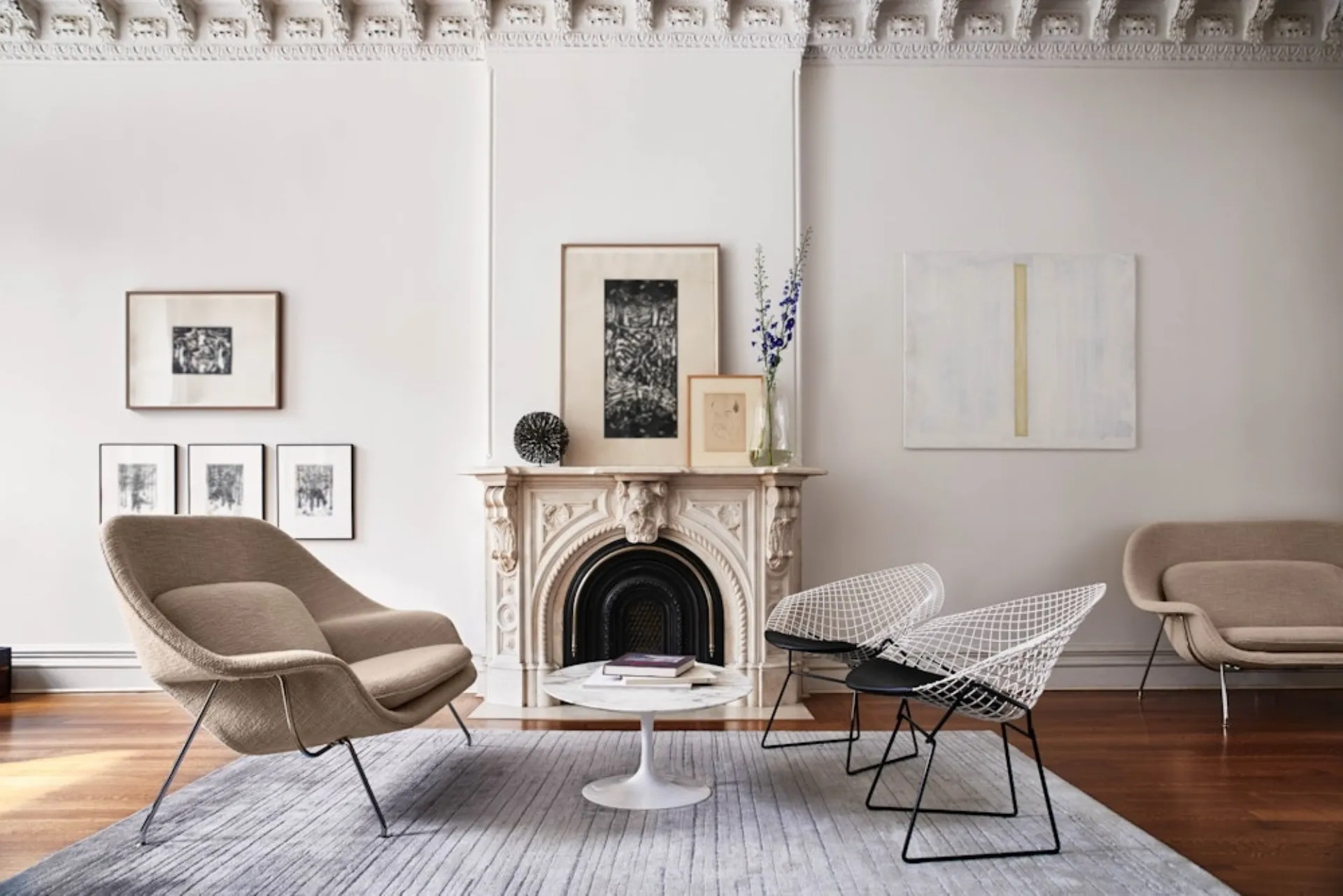 Our living rooms are designed to be paired with accessories of all kinds, such as coffee tables, lampshades, and floor lamps or in combination with additional fabric sofas. The Knoll Womb Settee linear sofa recreates a cozy and comfortable space in modern spaces of great personality. If you desire linear sofas and armchairs like the model in the photograph, characterized by volumes that invite you to spend your moments of relaxation. The Knoll catalog offers various possibilities for furnishing the environment in the name of practicality and design, putting your comfort at the center. The brand's sofa series offers various unique possibilities for furnishing the living room in the name of practicality, comfort, and style.