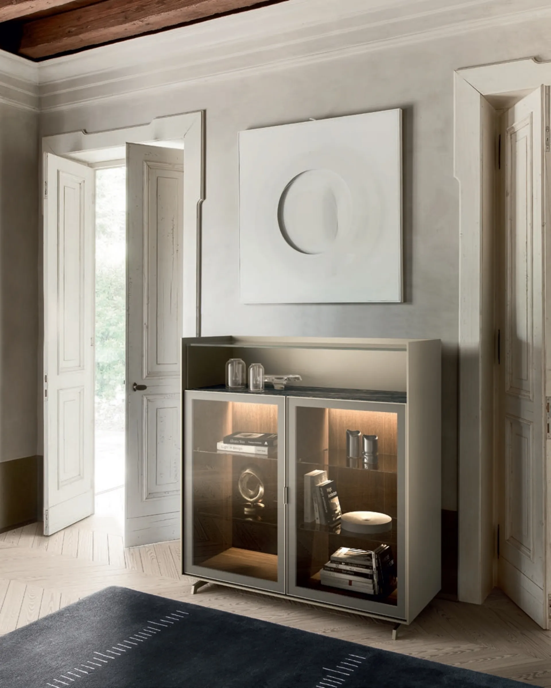 The Madia Cabaret Teca by Sangiacomo in the photo, made of glass, solves the most specific needs for space and style, furnishing the living room with practicality and a unique style. If you are a furniture enthusiast and always keep up to date with the latest trends in the field, our store is the right place for you. Modern madie, including the model shown in the photo, make the living room or dining area beautiful thanks to their unique design and great storage capacity. If you are looking for a space-saving madia model, discover in our store a wide range of Home Furnishings from the best brands and contact us for information and quotes.
