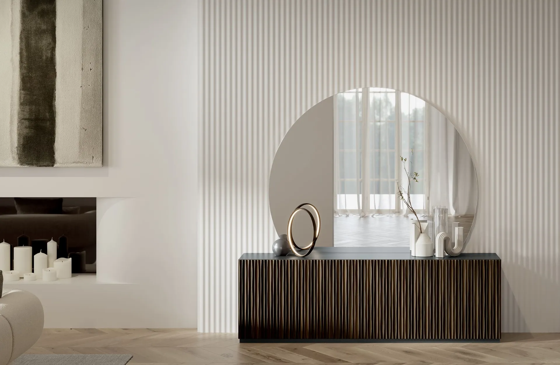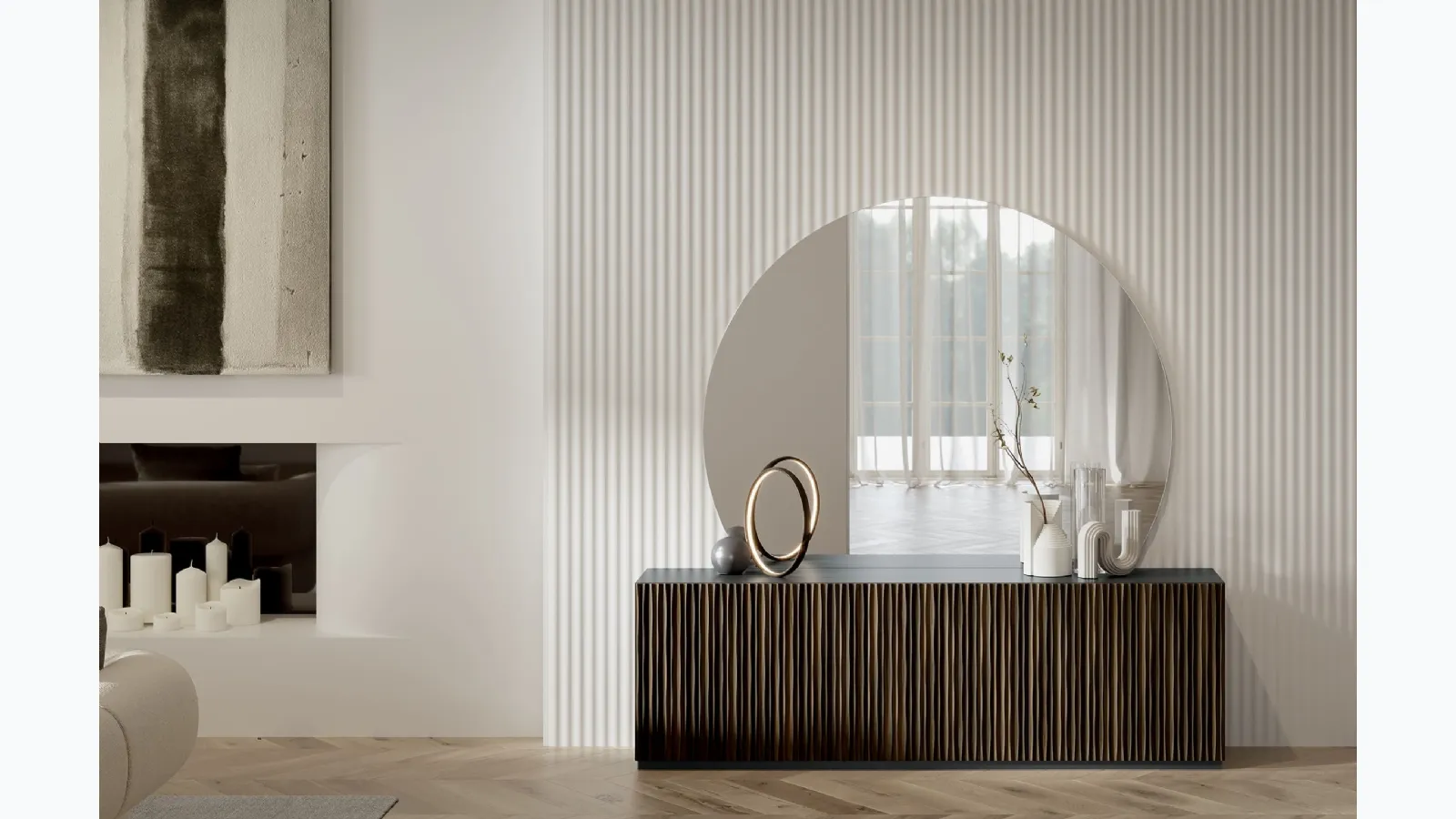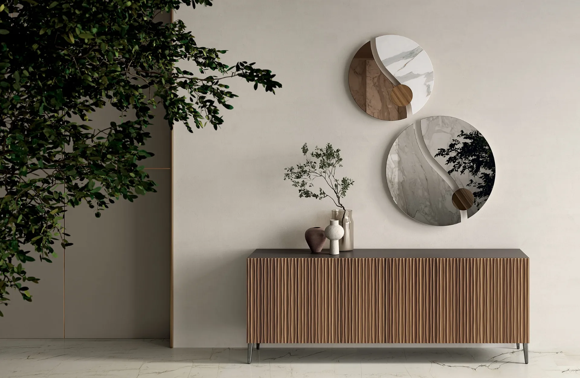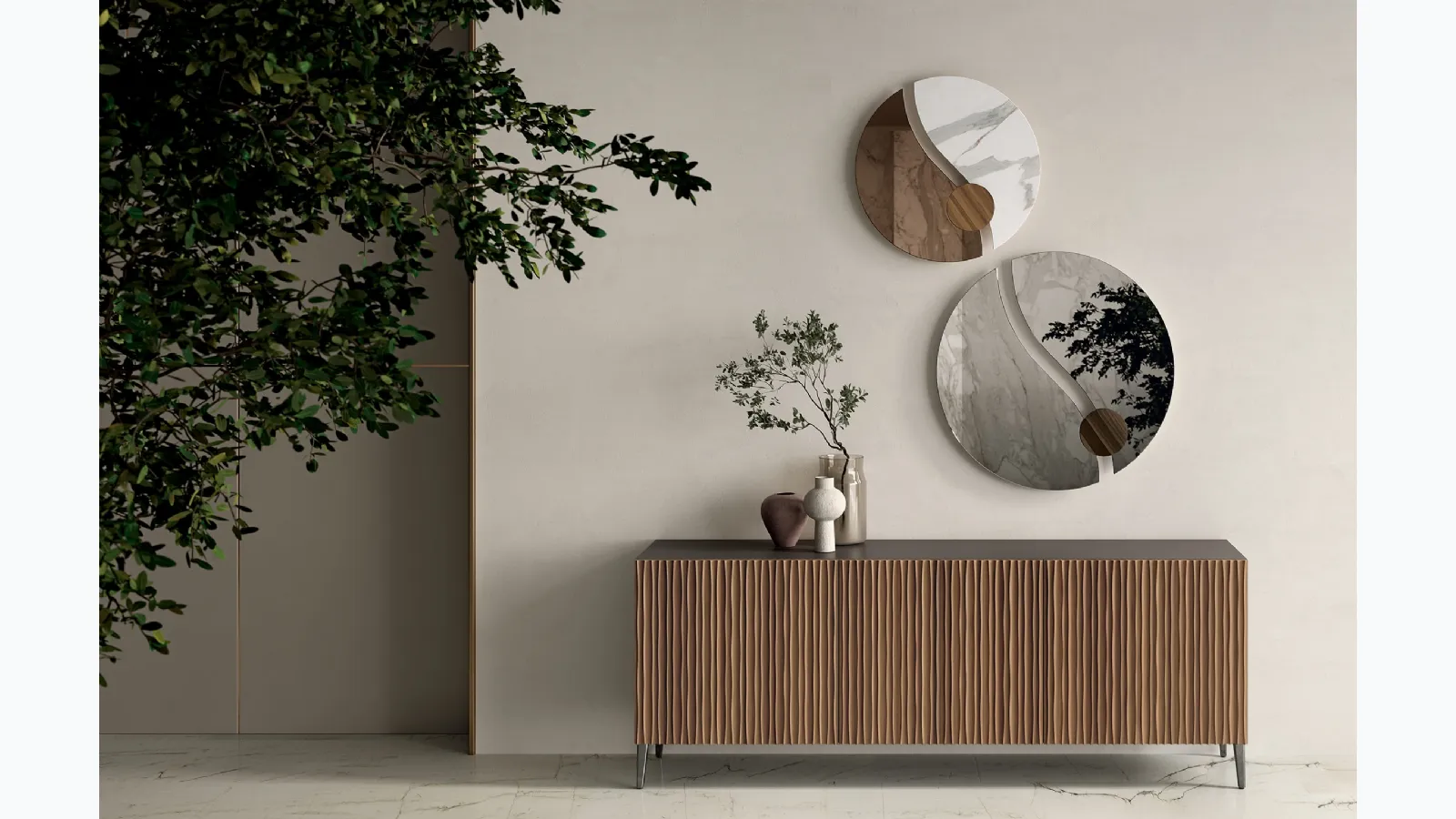 A living room furniture like this strategically enhances your spaces, enriching them: contact us and discover how to create a refined atmosphere with furniture and accessories for the living room. Captivating personality and unique design will also win you over: the Musa wooden sideboard by Bontempi is one of the most beautiful solutions on the market. Sideboards, like the wooden model shown in the photo, are able to personalize interior spaces thanks to the quality of coatings and materials. Explore our collection of wooden sideboards from the renowned Bontempi brand, like the model in the image, and you will be able to create a practical and functional living room. The manufacturer brand offers high-quality Home Furnishing products: we look forward to welcoming you to our showroom to show you the most beautiful compositions in person.