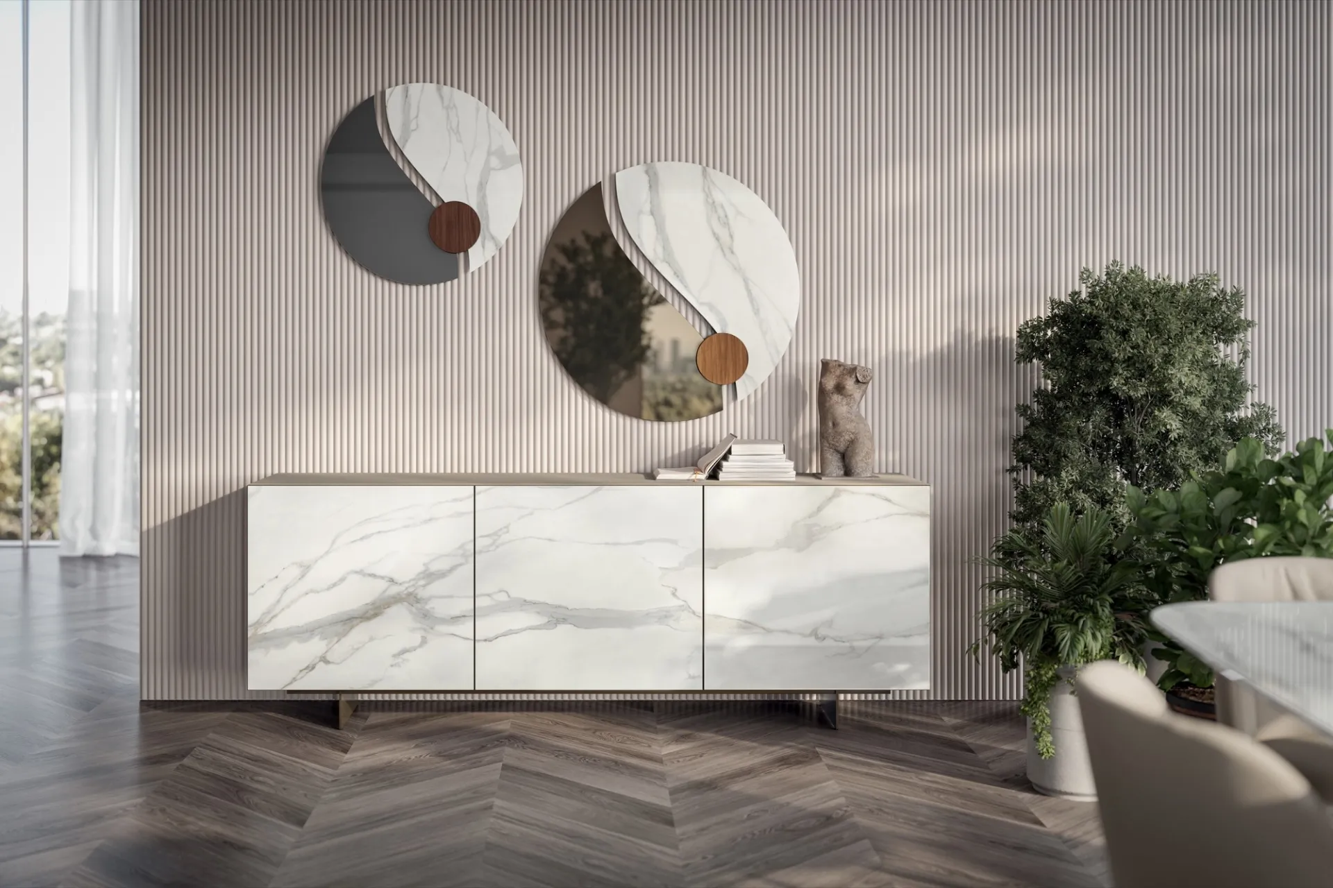 Thanks to the Olympia sideboard in SuperMarmo by Bontempi, you can complete your interiors enhancing every corner of the living room and ensuring a unique style. Contact us for further information on furniture and accessories for the living room: a wide range of modern dressers awaits you! With the sideboard here, you can recreate a unique atmosphere. To avoid making mistakes, carefully consider which furniture is suitable for your living room, among different solutions of fitted walls, bookcases, and dressers.