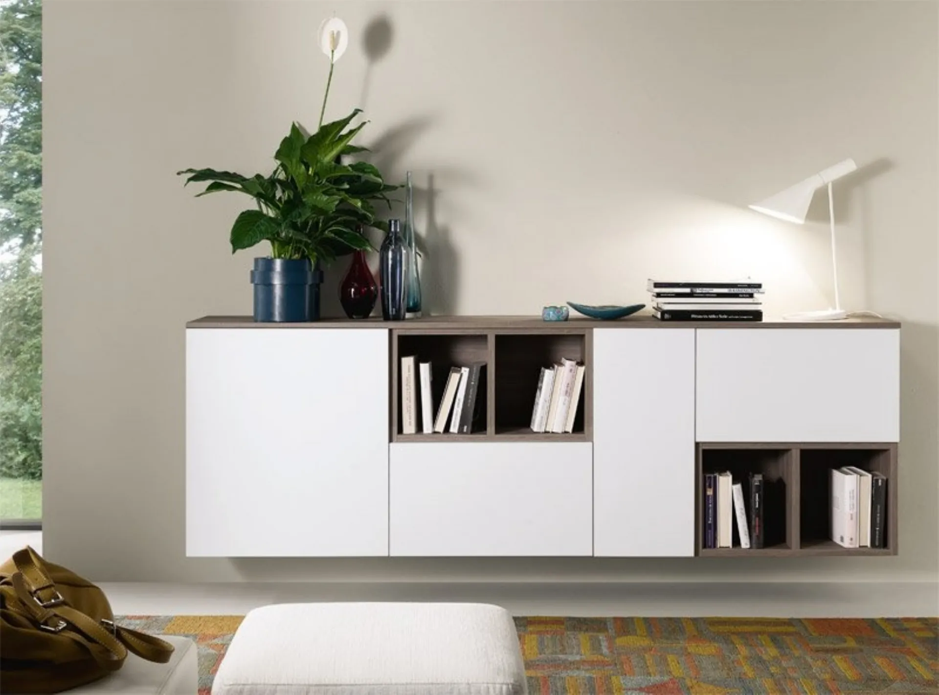 If what you are looking for is a space-saving living room furniture model, discover in our showroom a rich catalog of Home Furnishings from the best manufacturers and contact us for information and estimates. The Suspended Sideboard Spot Irma Bianco by S75 in the photograph in melamine solves the most personal needs of space and style, furnishing the living room with functionality and a unique style. If you are a furniture enthusiast and always keep up to date on the evolution of design in the field, our exhibition center is the perfect place for you. Modern Sideboards, including the model shown in the photo, make the living room or dining area beautiful thanks to unique design and great storage capacities. Even in a not too large living room, these living room furniture pieces can meet different housing needs, ensuring various possibilities for customizing tailor-made.