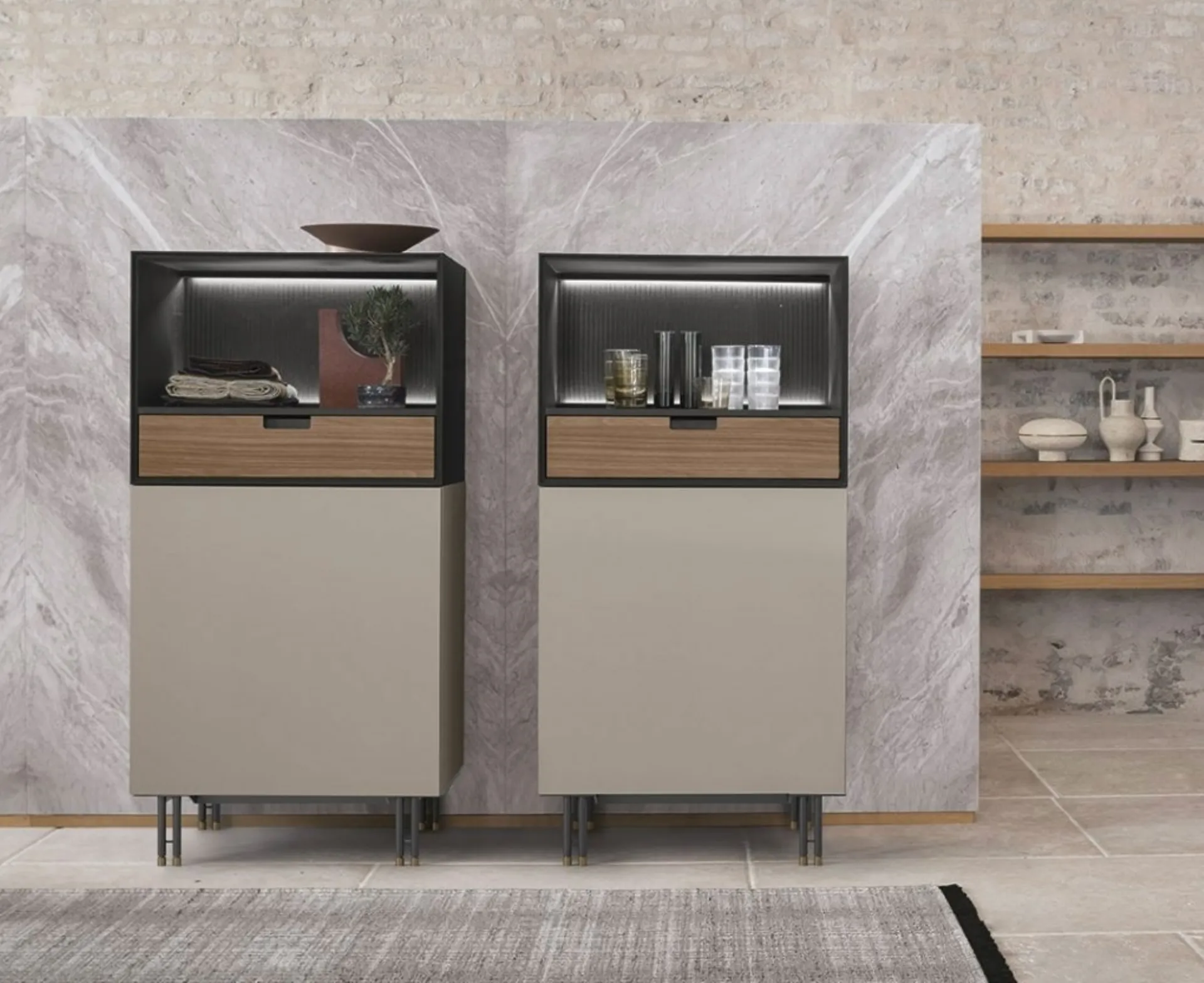 Enhance your living room according to your housing needs: discover in store a wide range of living room furniture, also in melamine like the model shown in the photo. The Madia Time L by Tomasella, here with a melamine finish, is the ideal choice as it adds a refined touch to the living room. For enthusiasts in the furniture sector, this modern style sideboard guarantees the quality of the renowned brand: contact us for information and quotes. If you are looking for a solid, pleasant, and elegant sideboard to optimize your living room, be inspired by the most exclusive modern sideboards from the best furniture manufacturers.