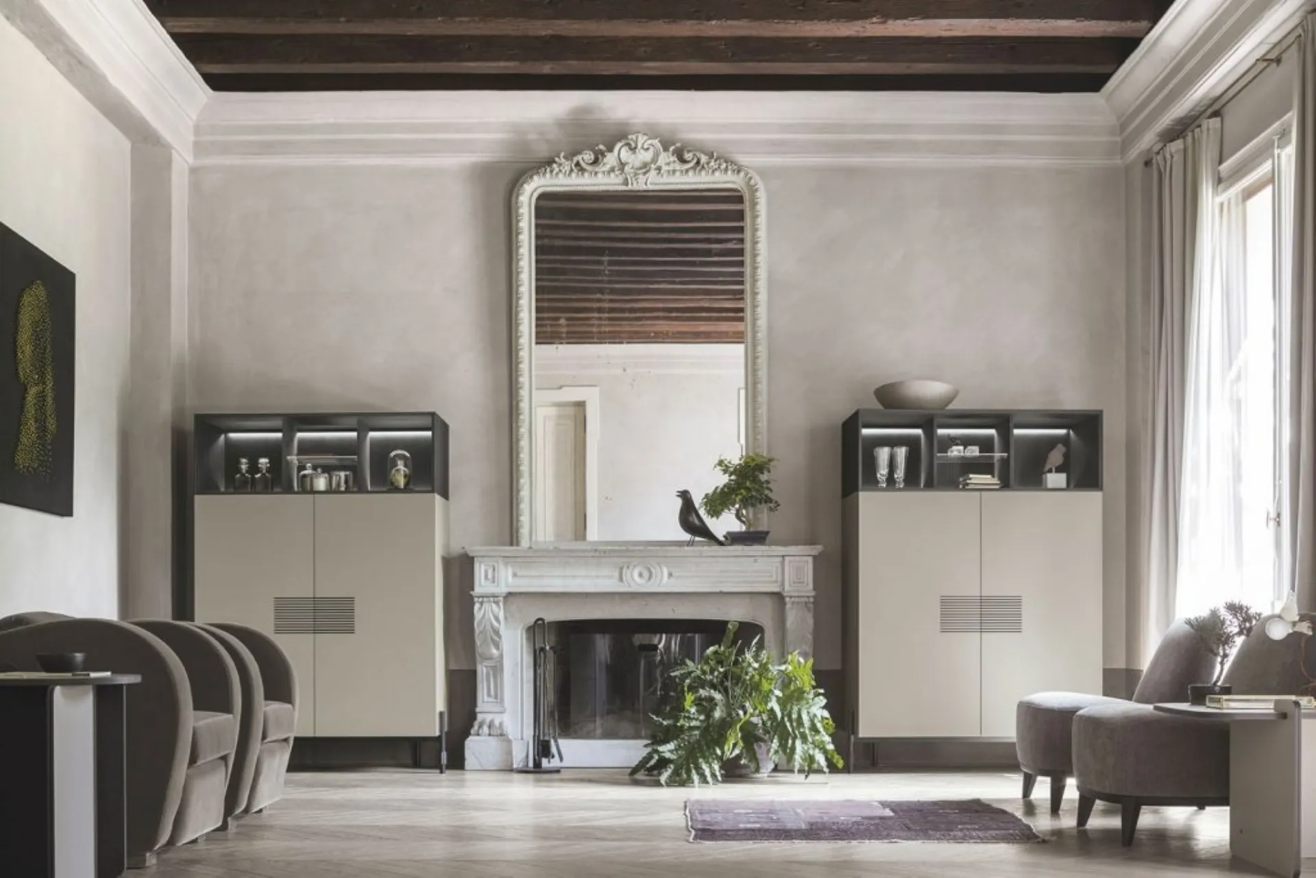 Even in a small living room, these living room furniture pieces are able to solve different housing needs by ensuring various possibilities for custom customization. Modern sideboards, including the model visible in the photo, enhance the living room or dining area thanks to their unique design and great storage capabilities. The Time M Sideboard by Tomasella in the photograph in melamine solves the most particular style and space needs, furnishing the living room with practicality and a unique style. If you are looking for a space-saving living room furniture model, discover in our store a rich catalog of Home Furnishings from the best brands and contact us for information and quotes. If you are passionate about furniture and always up to date on the latest trends in the industry, our showroom is the perfect place for you.