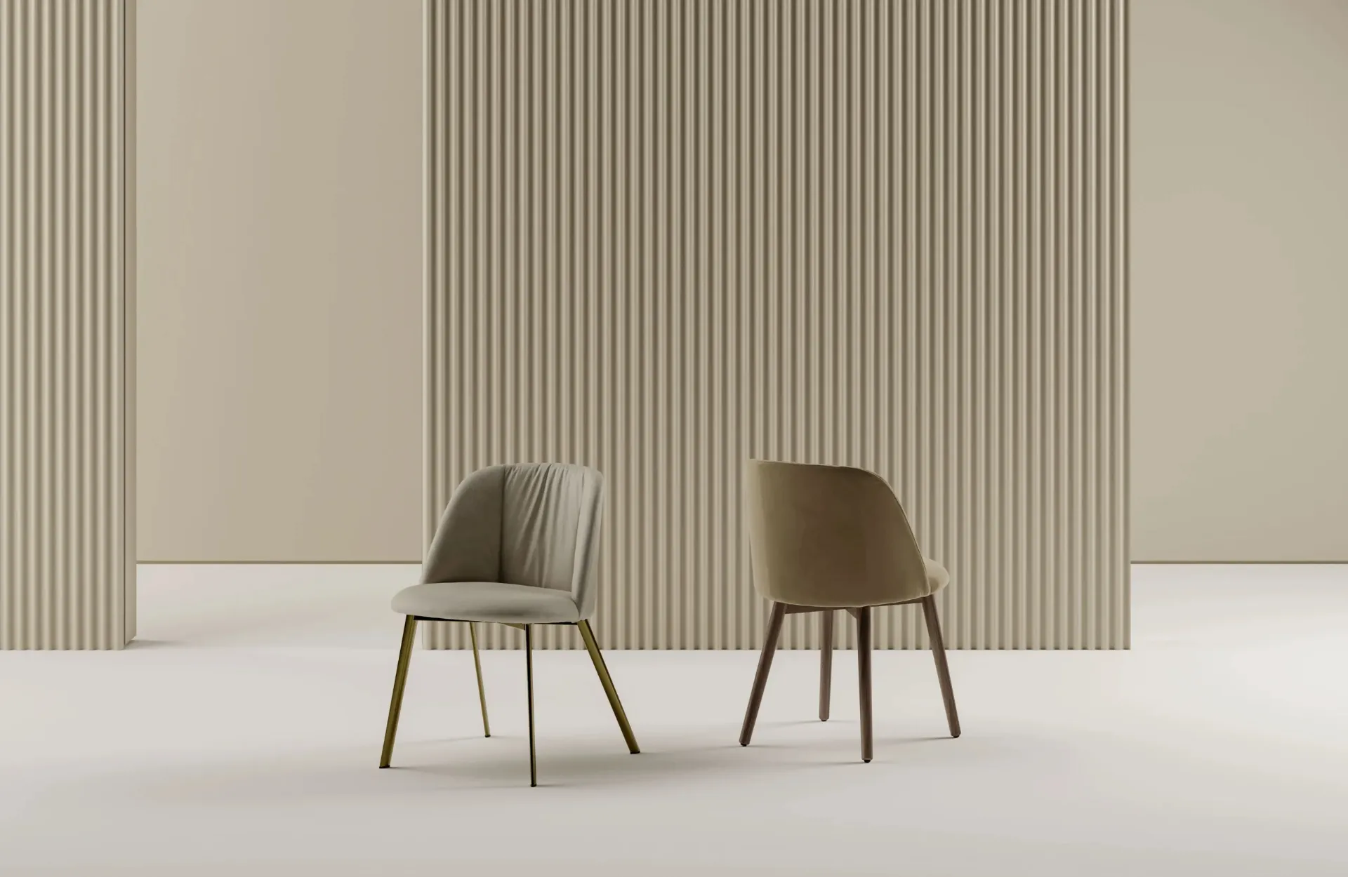 Among the best brands available in our Home Furnishing store, you can find the most original fixed dining chairs on the market. In our showroom, we present exclusive furniture and decorative items, among which you will surely find the solution that suits you best. A fabric chair like the one shown here decorates a living room or a kitchen with high aesthetic content, enhancing and enriching the spaces. Modern chairs, whether in wood or upholstered, are complex pieces of furniture characterized by an almost infinite range of colors, lines, and patterns. In addition to fulfilling an essential role, these furnishings are able to enhance even a monotonous space lacking in decorative elements. Contact us and find out more about the Agatha Chair by Bontempi model shown in the photo.