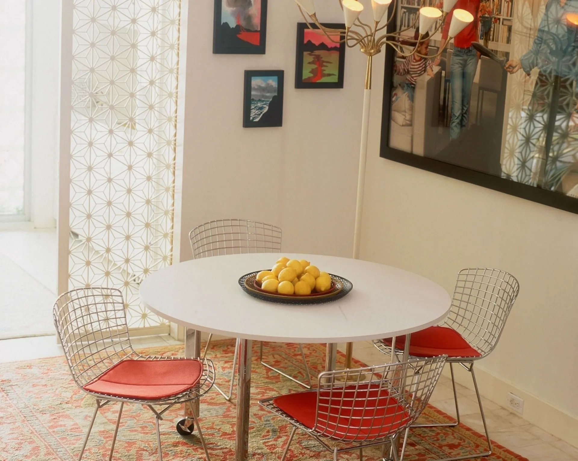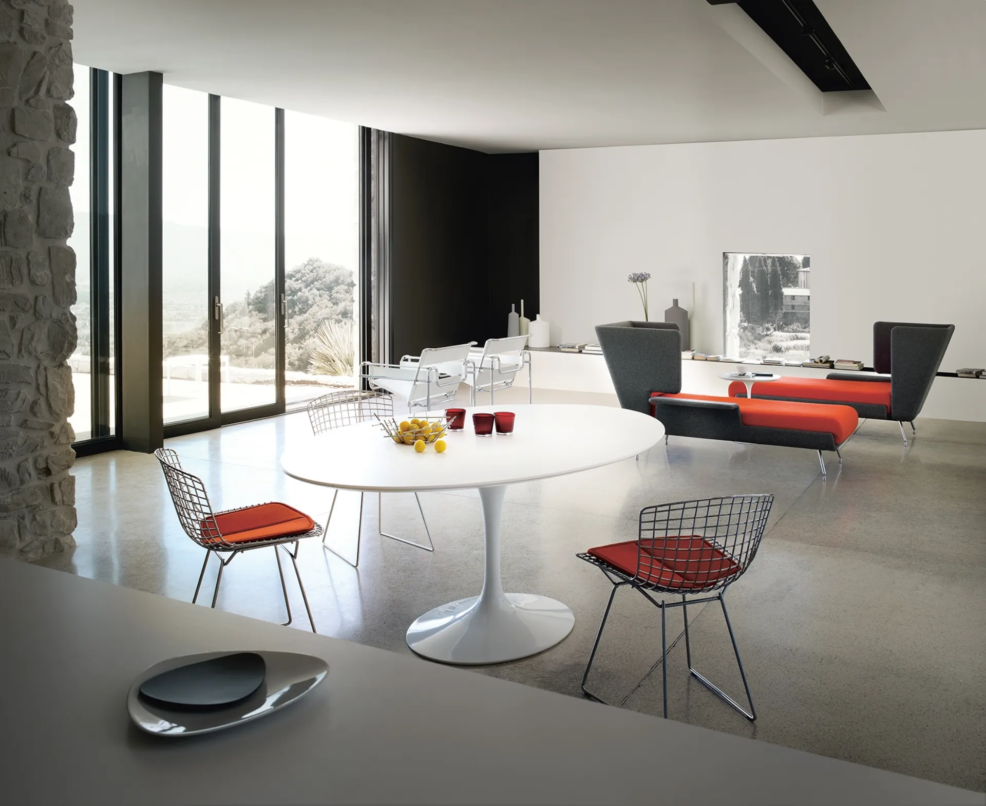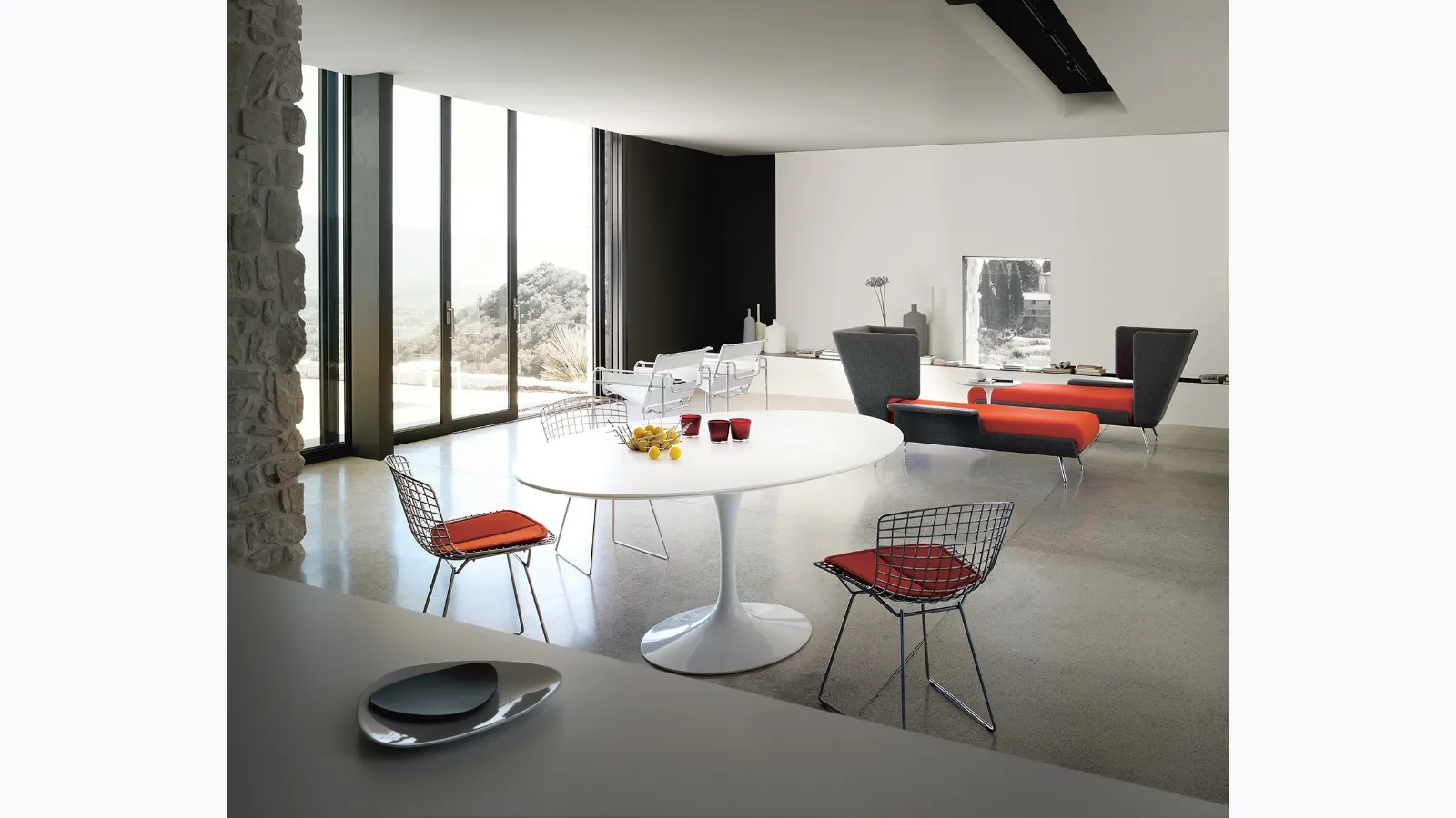 A metal chair like the one shown here decorates a living room or kitchen of high quality, enhancing the spaces and making them more precious. Among the best brands available in our Home Furniture store, you will find the most original Fixed Kitchen Chairs on the market. Modern chairs, both in wood and upholstered, are complex pieces of furniture, characterized by an almost infinite range of colors, shapes, and patterns. Besides fulfilling an essential function, these furnishings manage to enhance even a monotonous space without additional elements. Contact us and discover more about the model of Knoll's Bertoia Side Chair visible in the photo. In our store, we present exclusive furniture and decorative items, among which you will definitely find the solution that suits your needs.