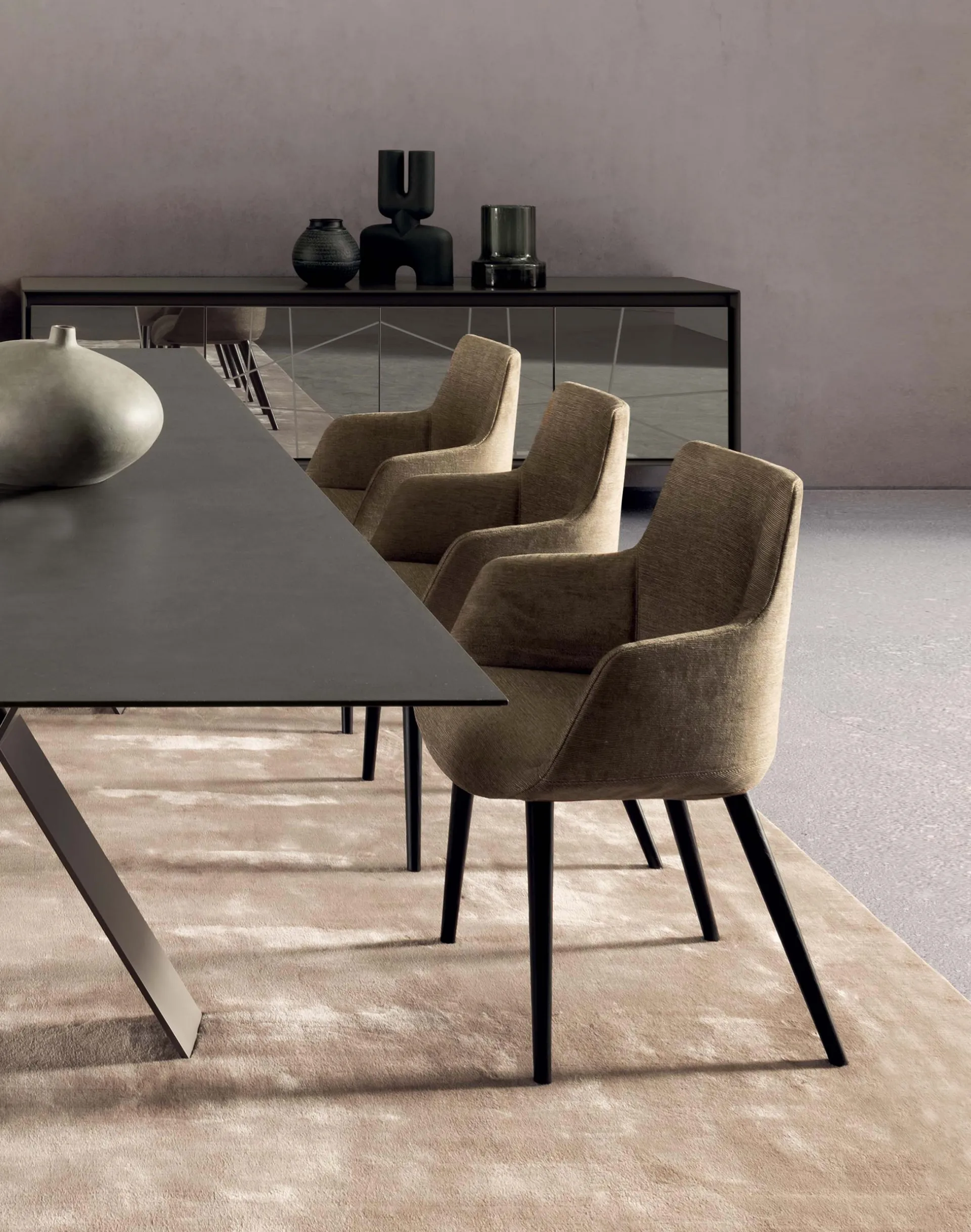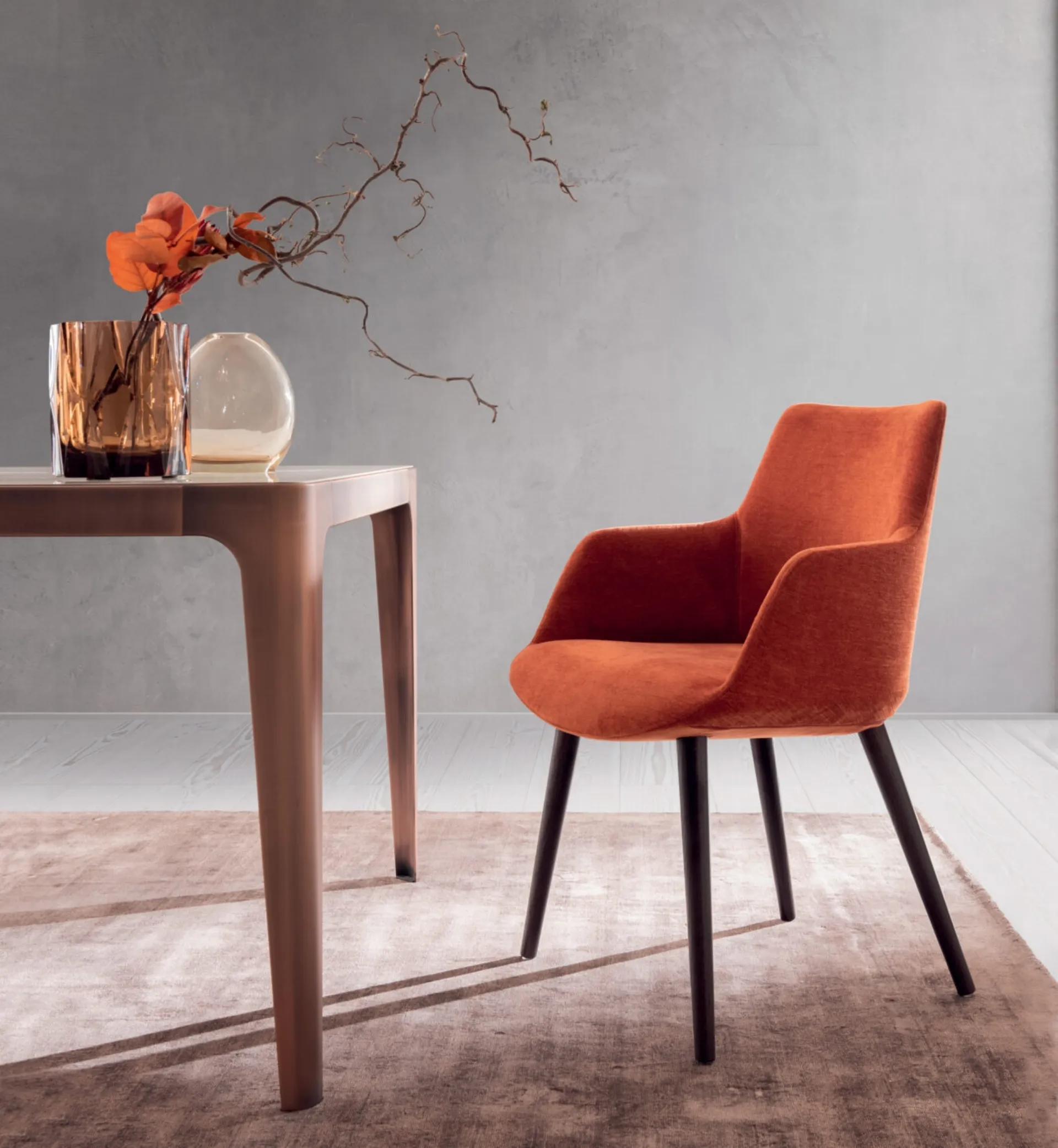 A rich catalog of furniture and accessories awaits you in our showroom, where you can find fixed chairs in fabric from the best brands. Taking a look at our fabric solutions will allow you to find the dining chair model of your dreams. If you wish to enhance modern environments, the model visible in the photo fits well in a space of this style. With this comfortable, ergonomic, and aesthetically pleasing solution, you can complete your interior design project and enrich the room where you converse with family and friends. Choose the Divina Chair by Presotto: favor one of the most beautiful proposals from the brand, a specialist in the Home Furniture sector. The kitchen area and dining room will not be truly complete without the right chairs, to be matched with the rest of the furniture and the style of your home.