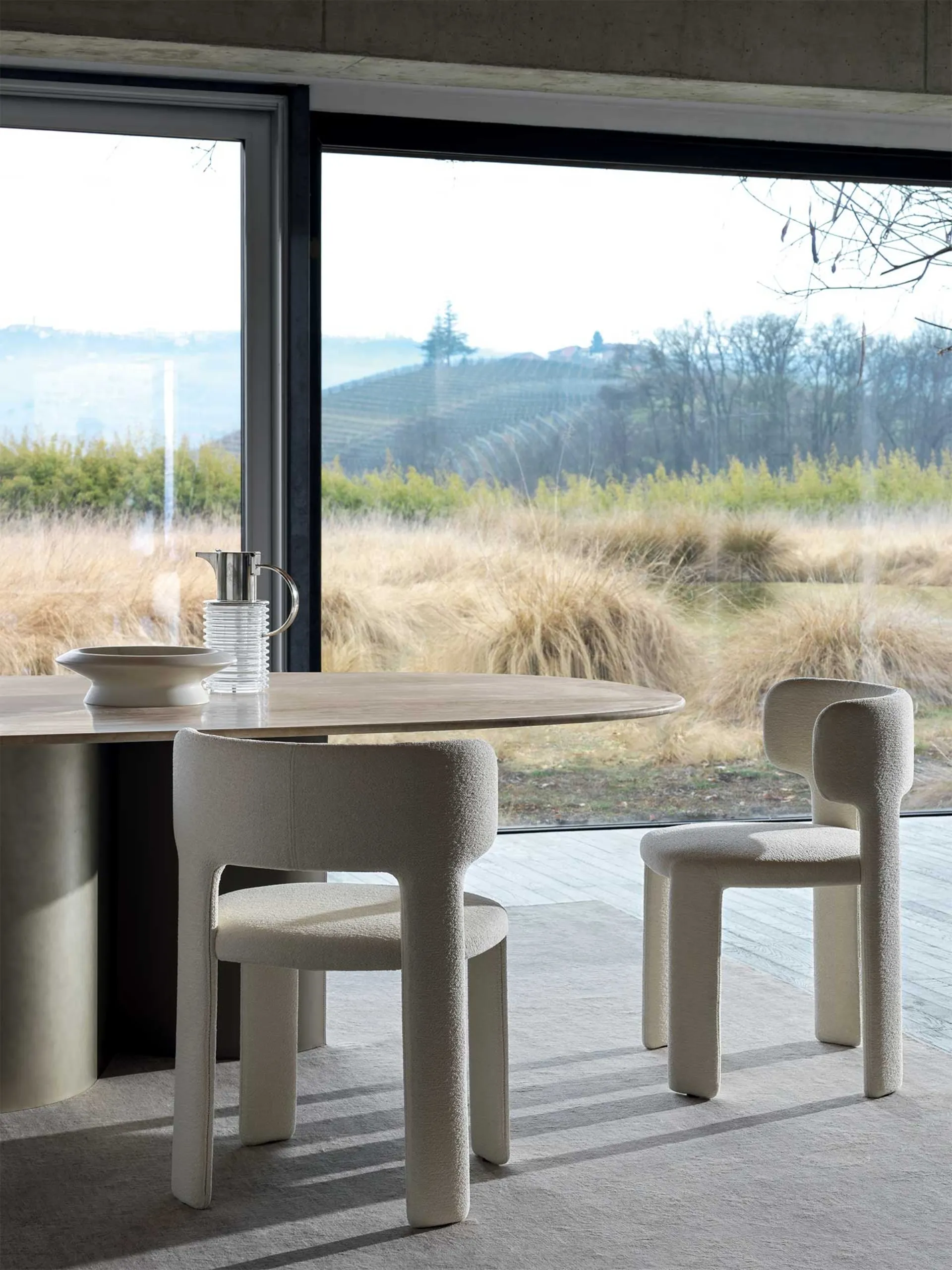 Lucy Chair by Ditre Italia: this model will complement spaces of any type, especially design environments. In the living room or kitchen area, chairs are essential pieces of furniture: they enhance the mood of the environment and serve an indispensable function. If you want a fabric chair to complete the home environment, find out more about the model in the photo and find a coordinated table. The living room and kitchen area are not really pleasant and comfortable if furnished with the wrong chairs, which is why they must be matched to the other furniture pieces and the size of the room.