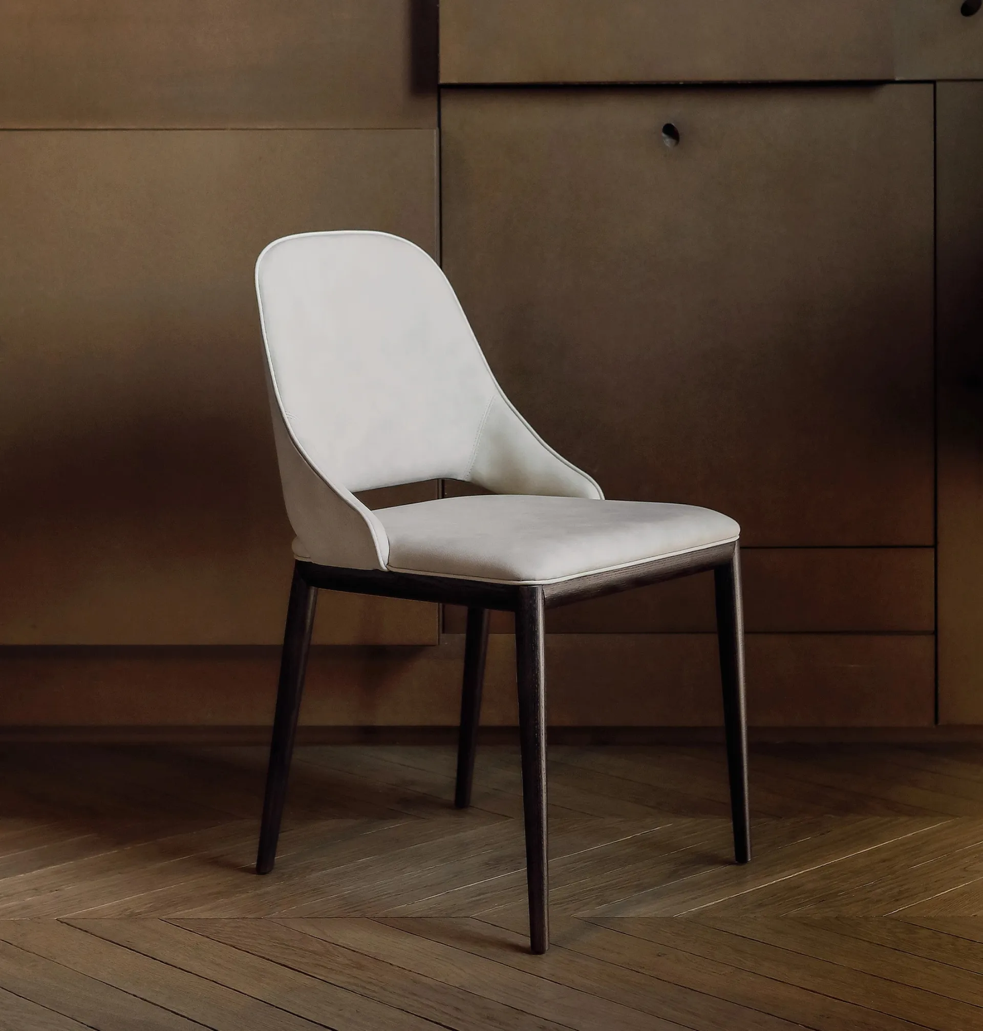 Every Tonin Casa solution ensures a high aesthetic content regardless of the destination room, as it organizes and enhances spaces. In addition to being truly comfortable and ergonomic, this leather chair will ensure total livability in rooms where you socialize with friends and family. Chairs are among the essential furniture and complements in every home, so we offer a wide collection of solutions in our store for you to choose based on your preferences. In our store, you can experience firsthand the most exclusive proposals on the market, including modern dining chairs signed by the renowned brand Tonin Casa.