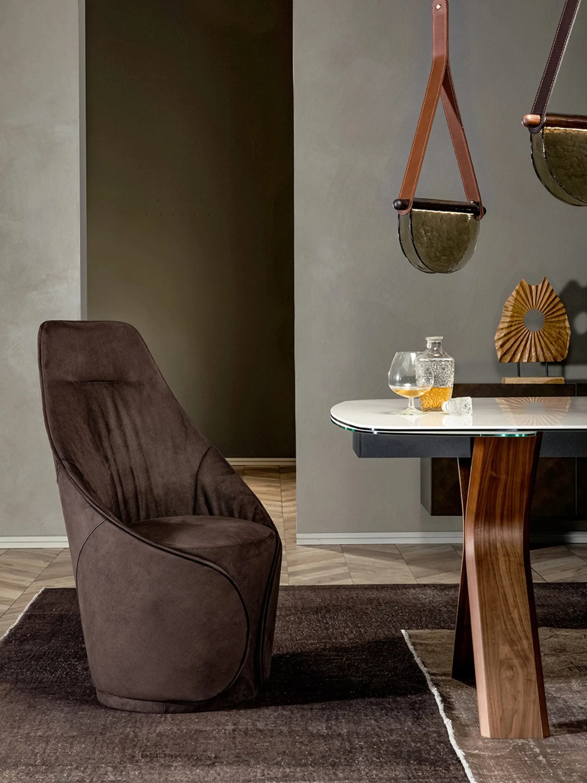 In our store, you can see firsthand the most original proposals on the market, including dining design chairs signed by the well-known and renowned brand Tonin Casa. Tonin Casa's Mama chair in leather: it will be able to furnish the dining area or the living room of your home at its best, combining qualities of functionality and style. In addition to being truly comfortable and ergonomic, this leather chair will ensure you a serene daily life in the rooms where you are together with family and friends. Seats are among the essential furniture and accessories in every home, so we have a wide range of solutions in store to choose from based on your preferences. Each Tonin Casa solution ensures a certain style regardless of the room it is intended for, as it organizes the spaces enriching their aesthetics.