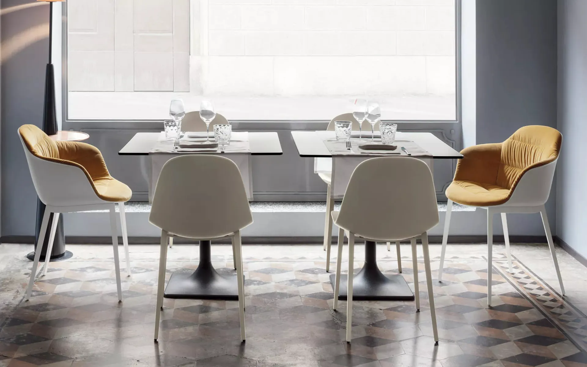 A wide range of furniture and accessories awaits you in the store, where you will find top brand plastic fixed chairs. Taking a look at our plastic solutions will allow you to find the dining model you have always dreamed of. If you want to enhance modern atmospheres, the model visible in the photo fits perfectly in a place of this style. With this comfortable, ergonomic, and aesthetically pleasing solution, you can complete your furnishing concept and enrich the room where you socialize with friends and family. The kitchen and dining area will not be truly complete without the right chairs, to be matched with the rest of the furnishings and the style of your home. Mood Chair by Bontempi: choose one of the most original proposals from the leading Home Furnishing brand.