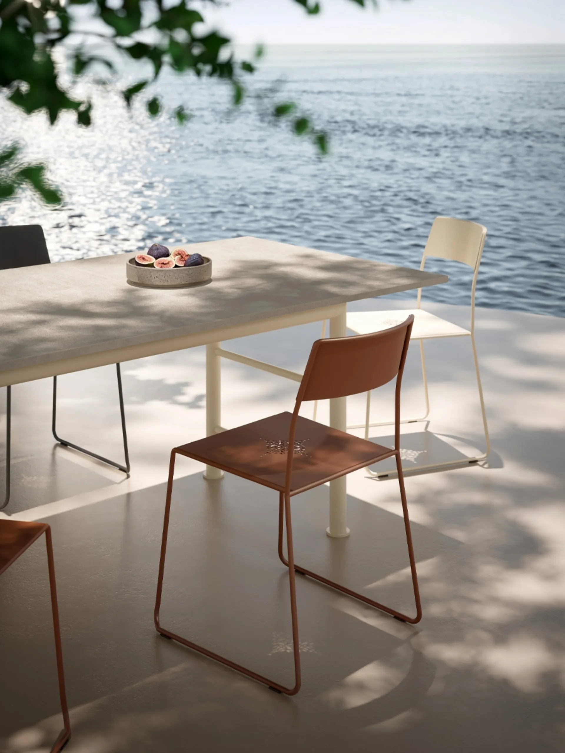 In the living room or kitchen area, Chairs are essential furniture: they define the mood of the room and serve a crucial function. If you want a metal chair to enhance the atmosphere of your home, find out more about the model in the photo and find a matching table. The living room and kitchen area are not truly welcoming and comfortable if furnished with the wrong Chairs, which is why they need to be matched to the rest of the furniture and the room's measurements. Nigelle Chair by Opinion Ciatti: this model will complete spaces of all kinds, particularly modern settings. A wide variety of stackable kitchen chairs awaits you in store: contact us for information and quotes and enhance your premises with the excellence that only Opinion Ciatti can guarantee for furniture and accessories.