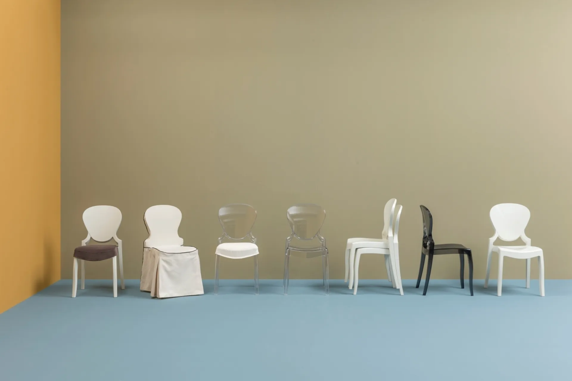 In addition to fulfilling an essential role, these furnishings are able to enhance a space that may be impersonal and lacking in additional elements. Design chairs, whether made of wood or upholstered, are complex pieces of furniture characterized by a nearly infinite choice of colors, shapes, and patterns. Contact us and learn more about the Queen Chair by Pedrali model shown in the photo. In our showroom, we offer exclusive furniture and accessories, among which you will definitely find the perfect solution for you. A plastic chair like the one featured here can decorate a high-quality living room or kitchen, adding value to the spaces. Among the best brands available in our Home Furnishing store, you will find the most original stackable dining chairs on the market.