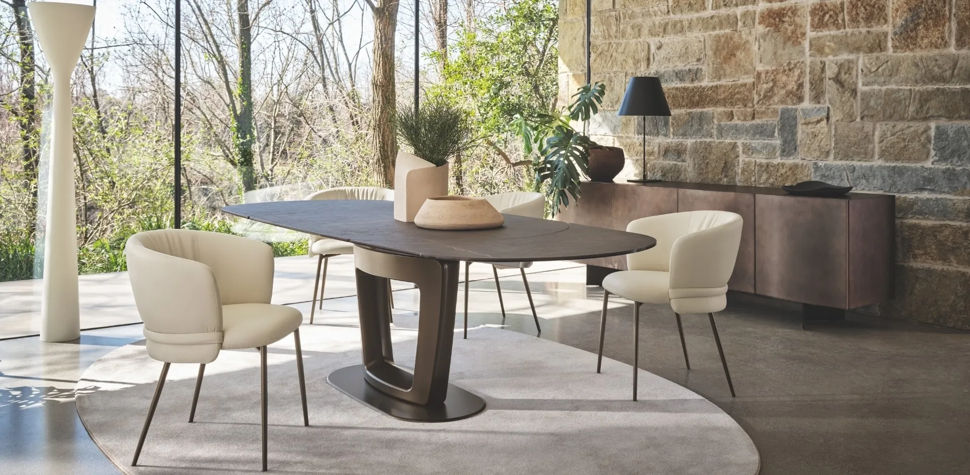 A fabric chair like the one shown here decorates a living room or kitchen with a high aesthetic appeal, completing the spaces and enhancing them fully. Among the best brands available in our Home Furnishings store, you can find the most beautiful fixed dining chairs on the market. Modern seats, both wooden and upholstered, are complex furnishings defined by an almost infinite choice of shades, shapes, and patterns. In addition to serving an essential function, these pieces of furniture can enhance even a neutral and accessory-free room. In our store, we present exclusive furniture and accessories, among which you will surely find the solution that suits you. Contact us and find out more about the model of Calligaris' Vanilla upholstered chair shown in the photo.