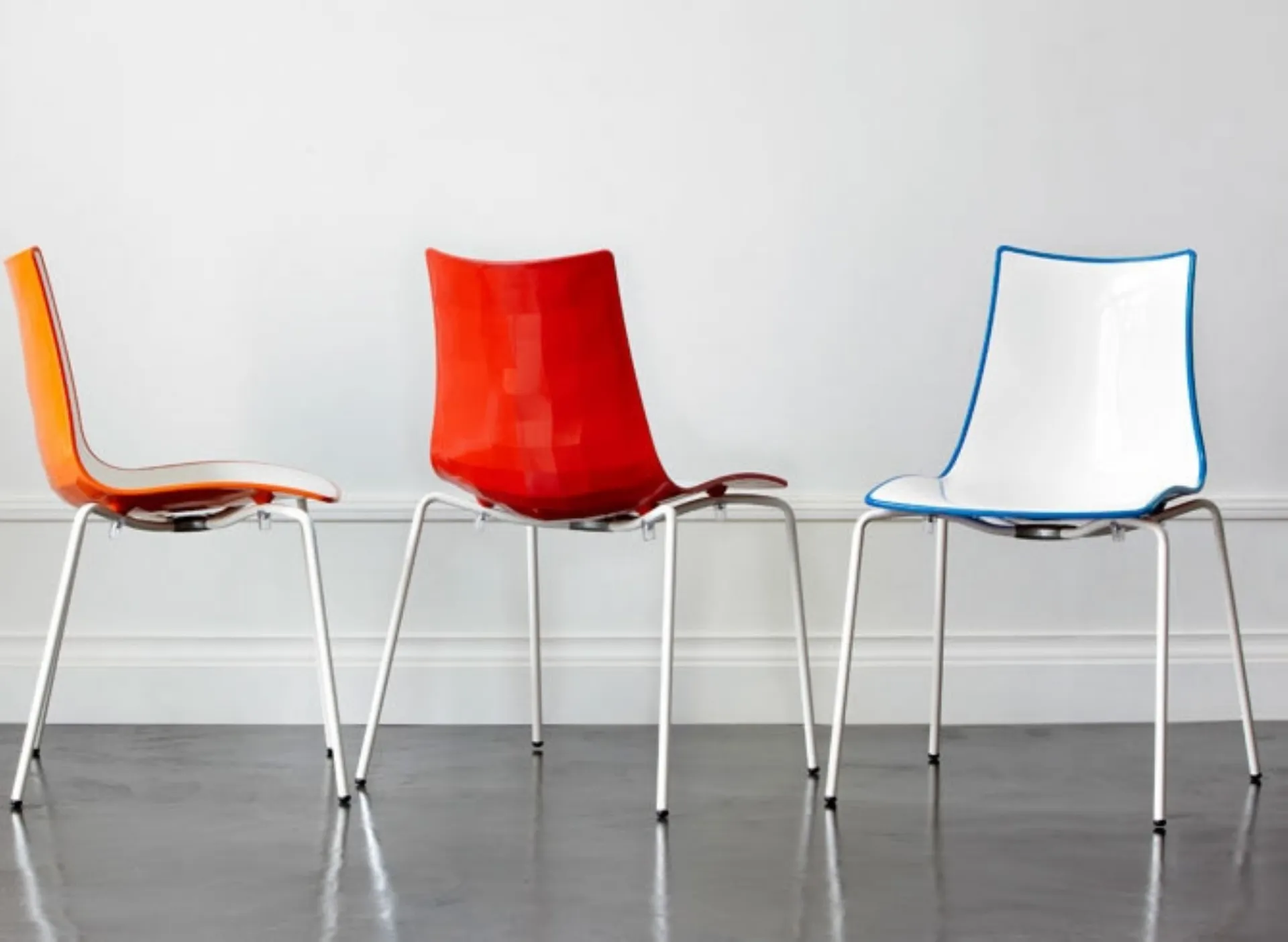 In addition to fulfilling an essential function, these pieces of furniture are able to enhance even an impersonal place devoid of accessories. Design chairs, whether in wood or upholstered, are complex pieces of furniture, characterized by an almost infinite choice of shades, shapes, and patterns. Contact us and get information on the model of Zebra Bcolor Chair by Scab Design shown in the photo. In our showroom, we offer exclusive furniture and accessories, among which you will surely find the solution that suits your needs. A plastic chair like the one pictured here can furnish a living room or a kitchen with great design, completing and enriching the spaces' aesthetics. Among the best brands available in our Home Furnishing store, you will find the most beautiful stackable dining chairs on the market.