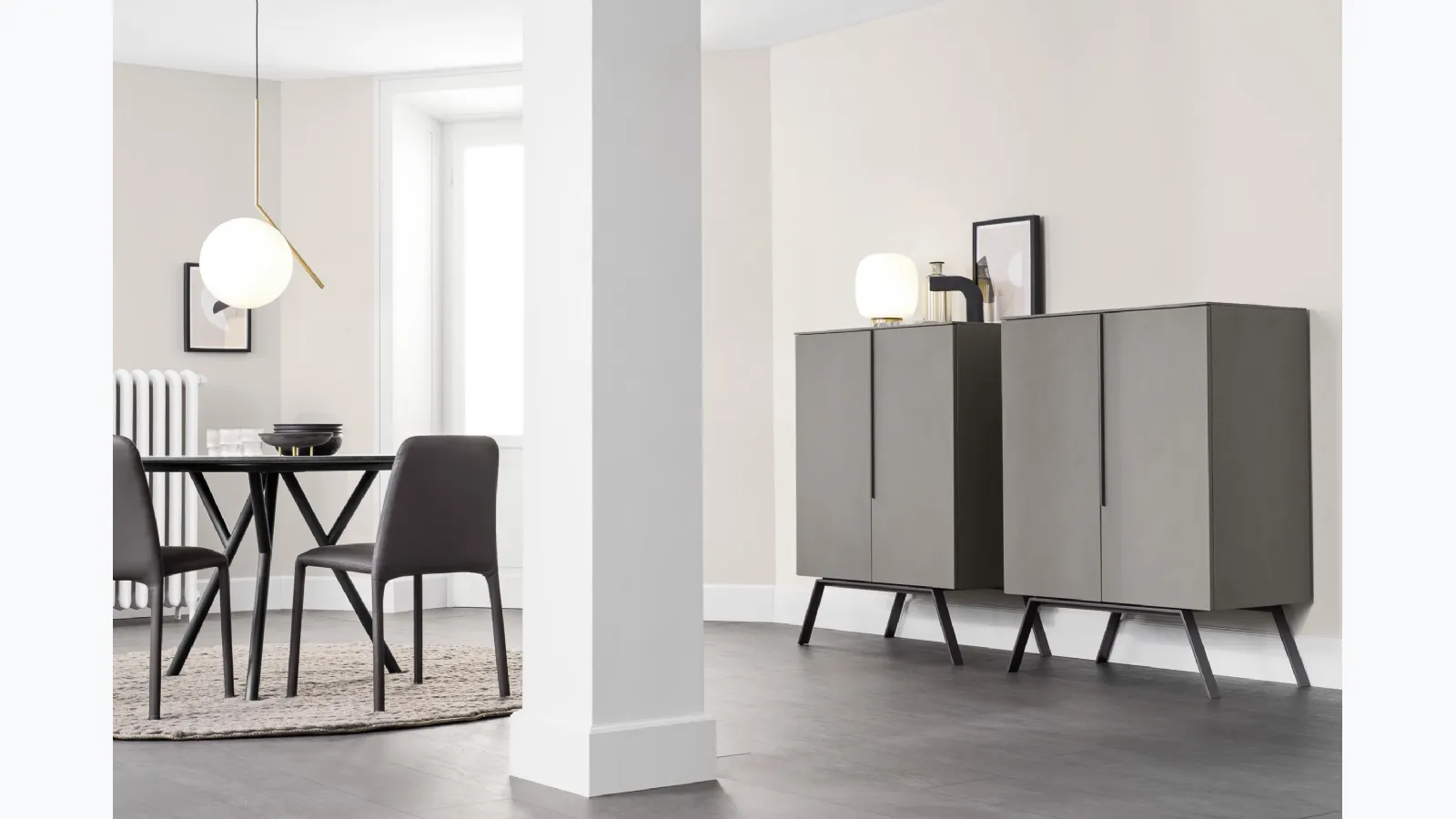 Cabinets are used to organize various objects, books, and magazines, as well as to enhance the space by blending practicality and design perfectly. The choice of cabinets for the living room or dining area is limited by the available space, but also involves the style of the room and one's own needs. If you desire a matte lacquered cabinet to place in your home, do not miss the opportunity to personally experience our exclusive furnishing compositions. Keep in mind that you will often invite family and friends to spend a few hours together at your home: it is essential that the space is well-managed and aesthetically valuable. For a respectable living room or dining area, choose this Cleo Tall Cabinet by Novamobili in matte lacquer among the various modern compositions of the brand.