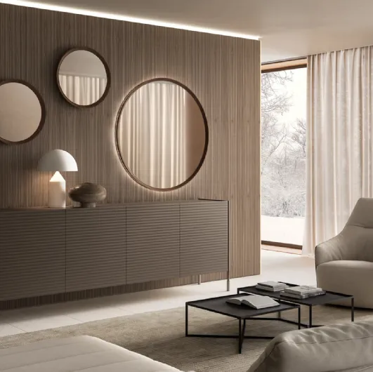If you desire a matt lacquered sideboard to place in your home, don't miss the opportunity to personally view our exclusive compositions. Sideboards contribute to organizing assorted objects, books, and magazines, as well as enhancing the beauty of the room by combining functionality and style excellently. Consider that you will often welcome friends and relatives into your home for a few hours of company: it is essential that the space be well-managed and of great aesthetic value. The choice of sideboards for the living room or dining area is influenced by the available space, but also involves the style of the room and one's own needs. For a respectable living room or dining area, prefer this Outline 02 sideboard by Novamobili in matt lacquer among the various modern offerings from the brand.