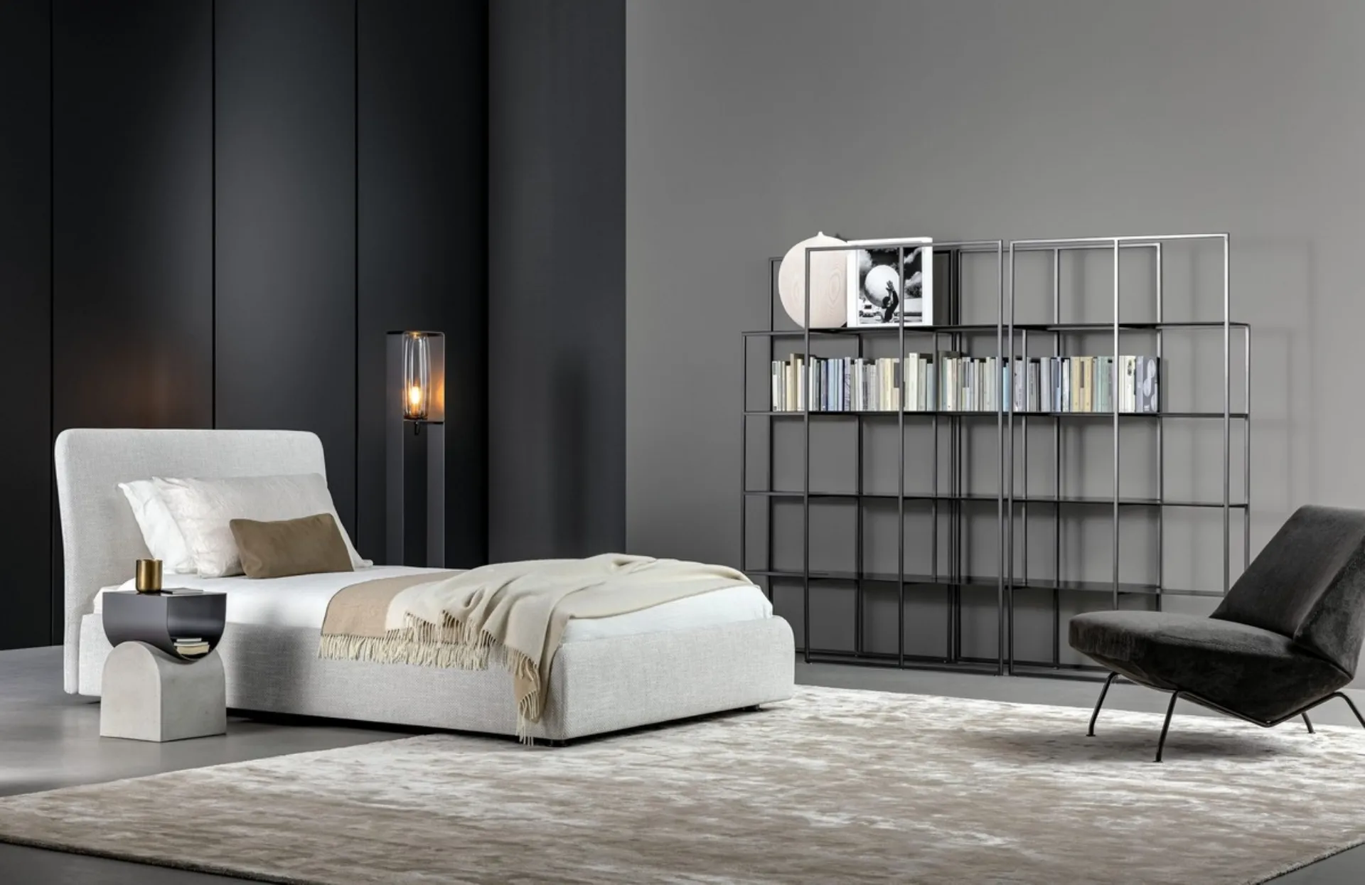 The single upholstered beds for the smallest room available in our store solve any space and practicality difficulties, ensuring at the same time a unique design. Durable materials and eco-friendly paints characterize the brand's offerings: if the room has compact dimensions, there are various solutions available, always able to combine ergonomics and safety. Discover more about the single Tonight bed by Bonaldo in the photograph: it is ideal for perfectly recreating a comfortable, beautiful and well-organized environment, perfect for your children. A rich catalog of modern fabric beds awaits you: the Bonaldo brand offers various versions of beds that always meet the needs of children.