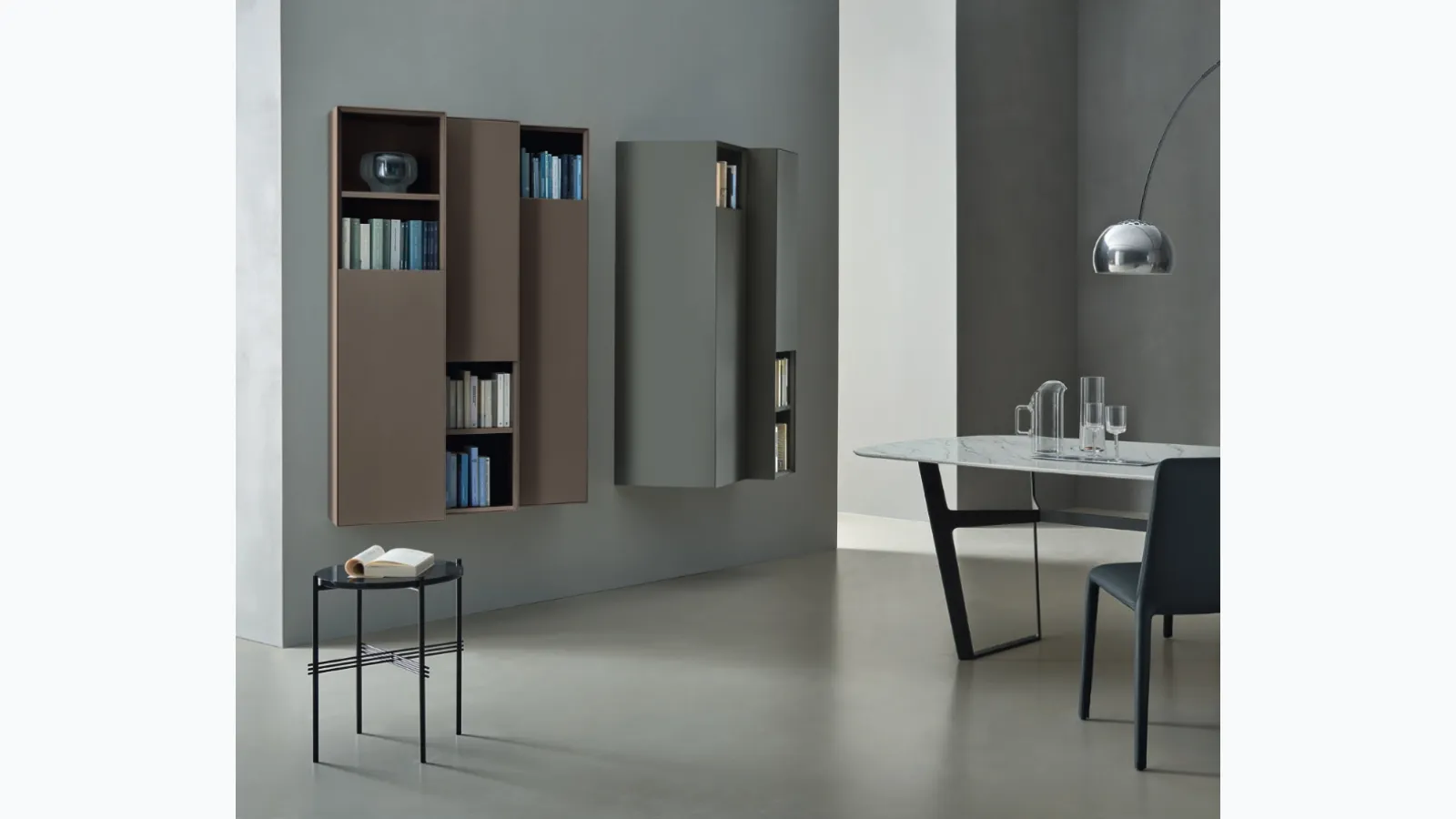 Whether you intend to store everyday or decorative objects, one of our modern products with great aesthetic value will be the ideal choice for you. Here, you will be able to personally see the most beautiful furnishing compositions with matt lacquered suspended furniture from our brand for your home spaces. Consider that the living area is the part of your house where you will often invite friends and family: the space should be comfortable and visually appealing. Essential to truly enhance and add quality to your home, modern suspended furniture completes the spaces with the best aesthetic results. Having a multifunctional support surface in the living room, to store various objects and organize the interiors optimally, is truly important. The storage capabilities of these modern Sangiacomo furniture pieces, like the one in the image, will ensure that you always have the space you need available.