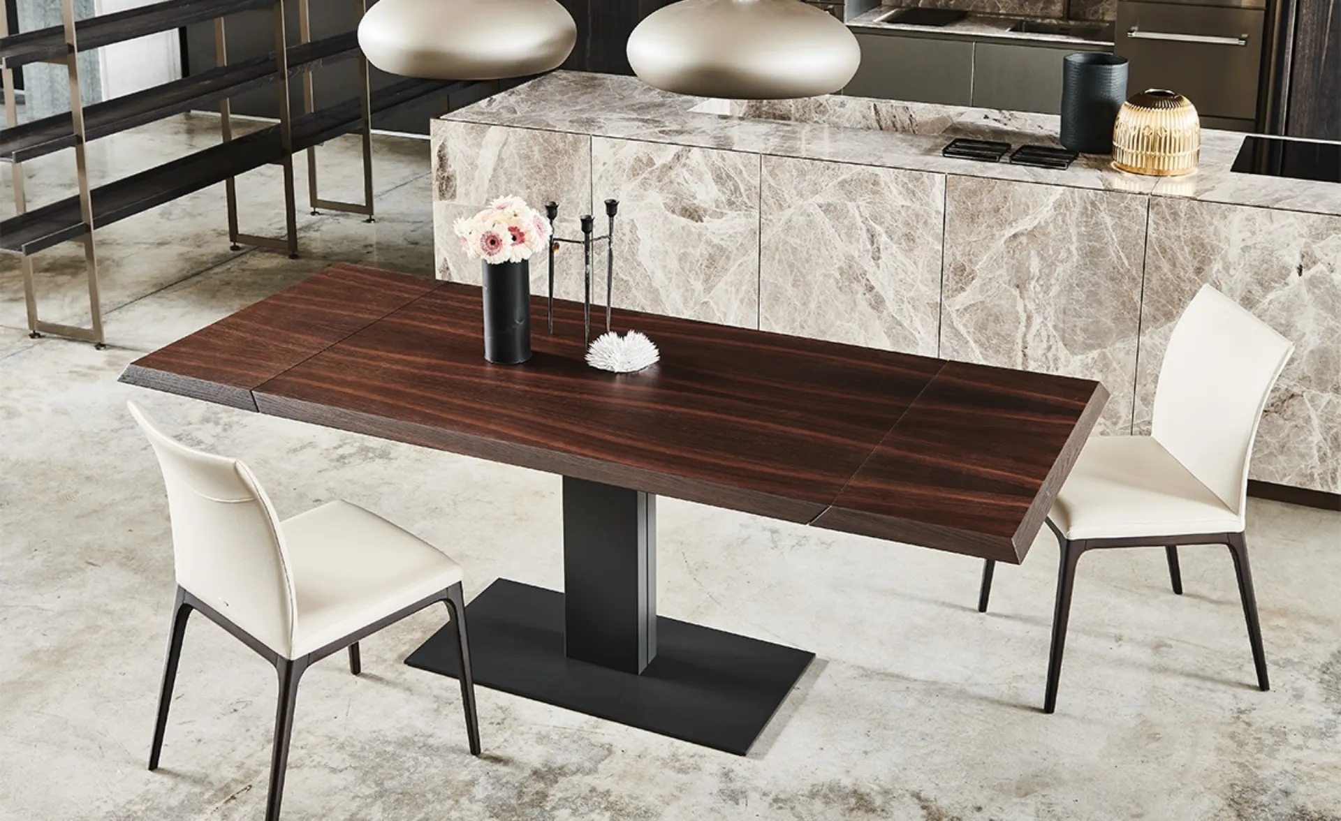 The expandable wooden models, like the one shown in the photo, are suitable for various spaces and living environments, as they are truly versatile and robust. Tables are furniture components that can enhance the living room, kitchen area, or even other areas of the house, thanks to quality materials and imaginative color combinations. Cattelan Italia's Elvis Wood Drive table offers a wide range of dining furniture and accessories to complete your premises, with various customization options. Fill out the form and contact us to discover the best home furnishings from top manufacturers, including Cattelan Italia tables and chairs. Tables are essential furniture in every home; complete your furnishing concept and bring your desired home to life.