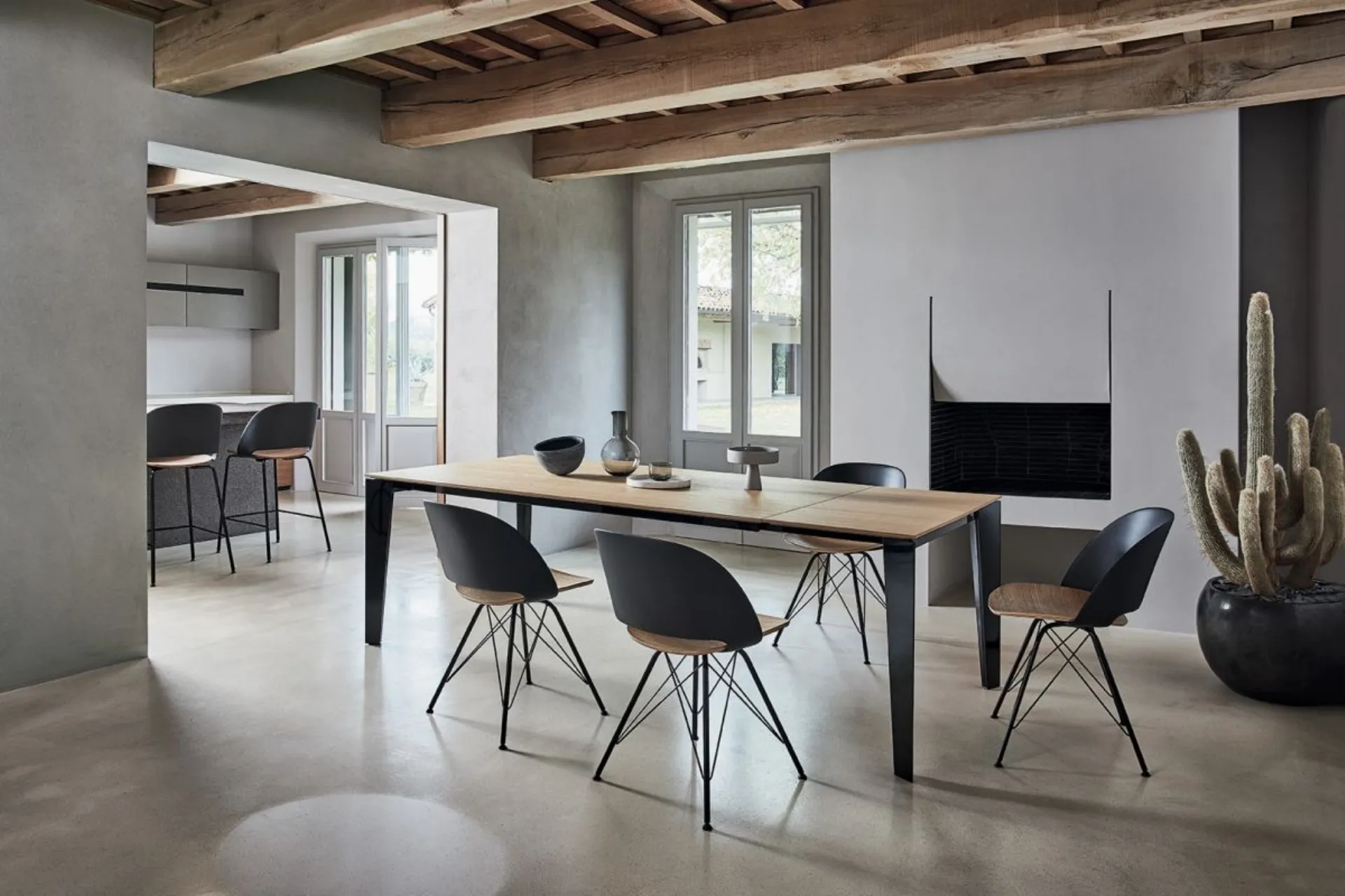 The well-known and renowned brand Bontempi, a leader in the production of melamine furniture, has chosen for its line a wide range of materials, shapes, and colors. If you are looking for a dining table with great design, contact us to receive information and quotes on the model visible in the photo. A model like the one in the image, paired with the right chairs, will enhance the atmosphere of rooms dedicated to socializing in the home. Ideal for creating unique combinations with modern chairs and accessories, the brand's extendable tables are among the most original solutions on the market, perfect for the living room and kitchen. Bontempi's extendable Cruz table: made of durable materials, it is characterized by the bold shapes of the top and an elegant and refined base.