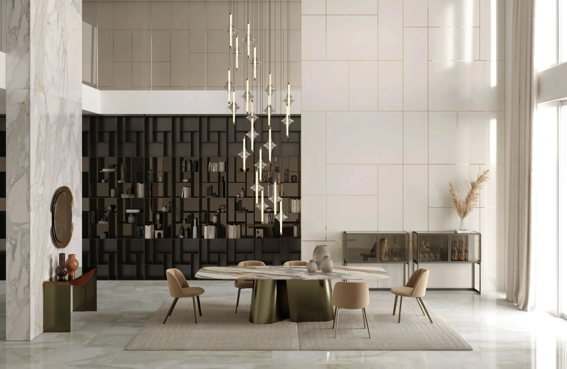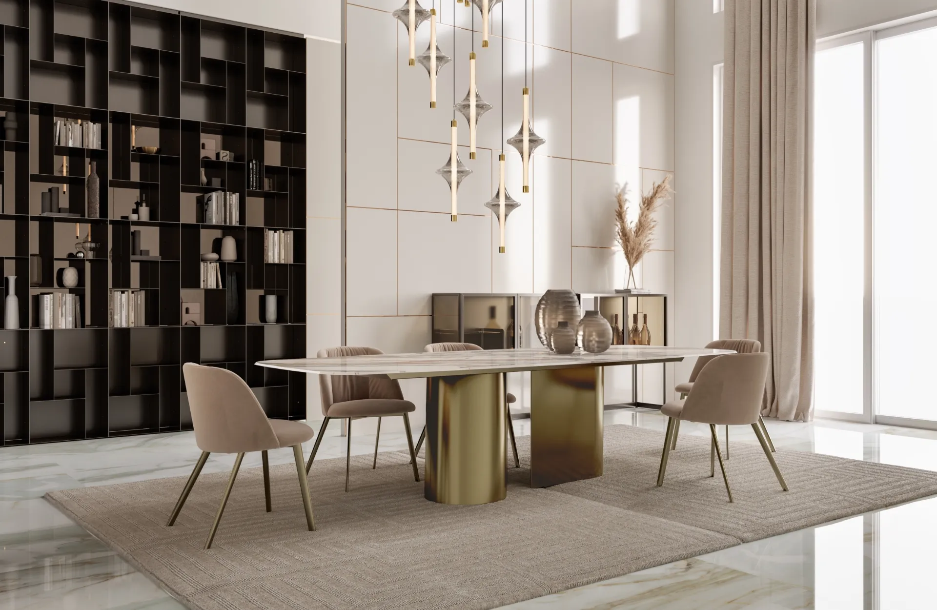A model like the one in the photograph, paired with the right chairs, will enhance the style of the rooms dedicated to conviviality in the home. The well-known brand Bontempi, a leader in the production of furniture in ceramics, has chosen for its series a wide choice of finishes, shapes, and colors. Ideal for creating unique combinations with designer chairs and accessories, the extendable tables from the brand are among the most original solutions on the market, perfect for the living room and kitchen. If you are looking for a dining table with high aesthetic value, contact us and receive information and quotes on the model visible in the photo.