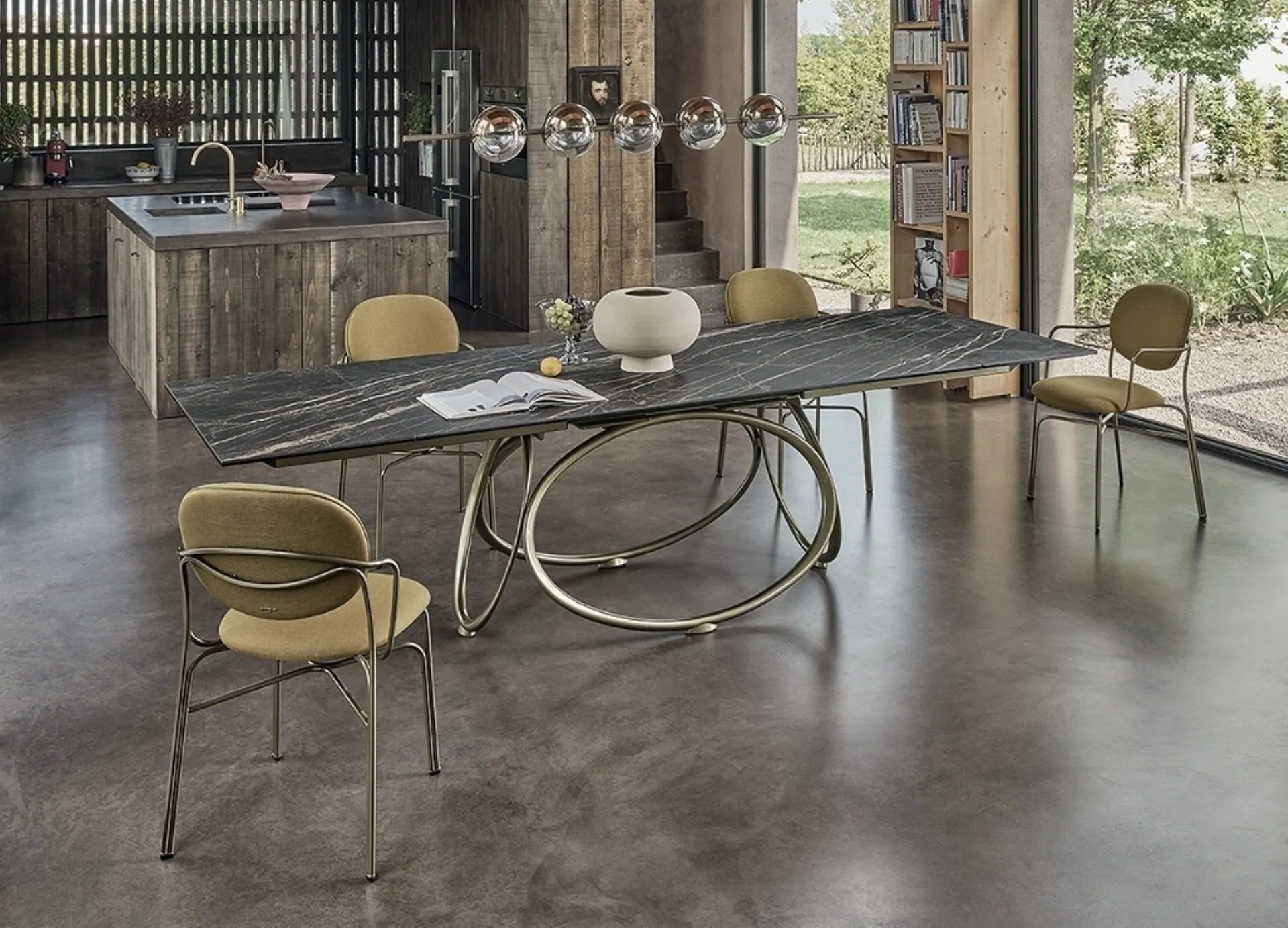 One of our extendable table models will enhance your furnishing concept with functionality and style. A table worth its salt must be made of quality materials, so that it is durable and preserves over time the aesthetic qualities that distinguish it. If you want to ensure a high aesthetic content in your domestic spaces, but also make the most of the space, then our solutions are perfect for you. Louis table in SuperMarble by Bontempi: in store, a practically infinite range of beautifully designed compositions is waiting for you. The exclusive brand Bontempi offers a rich catalogue of extendable dining tables, including those ideal for enhancing design spaces to the fullest.