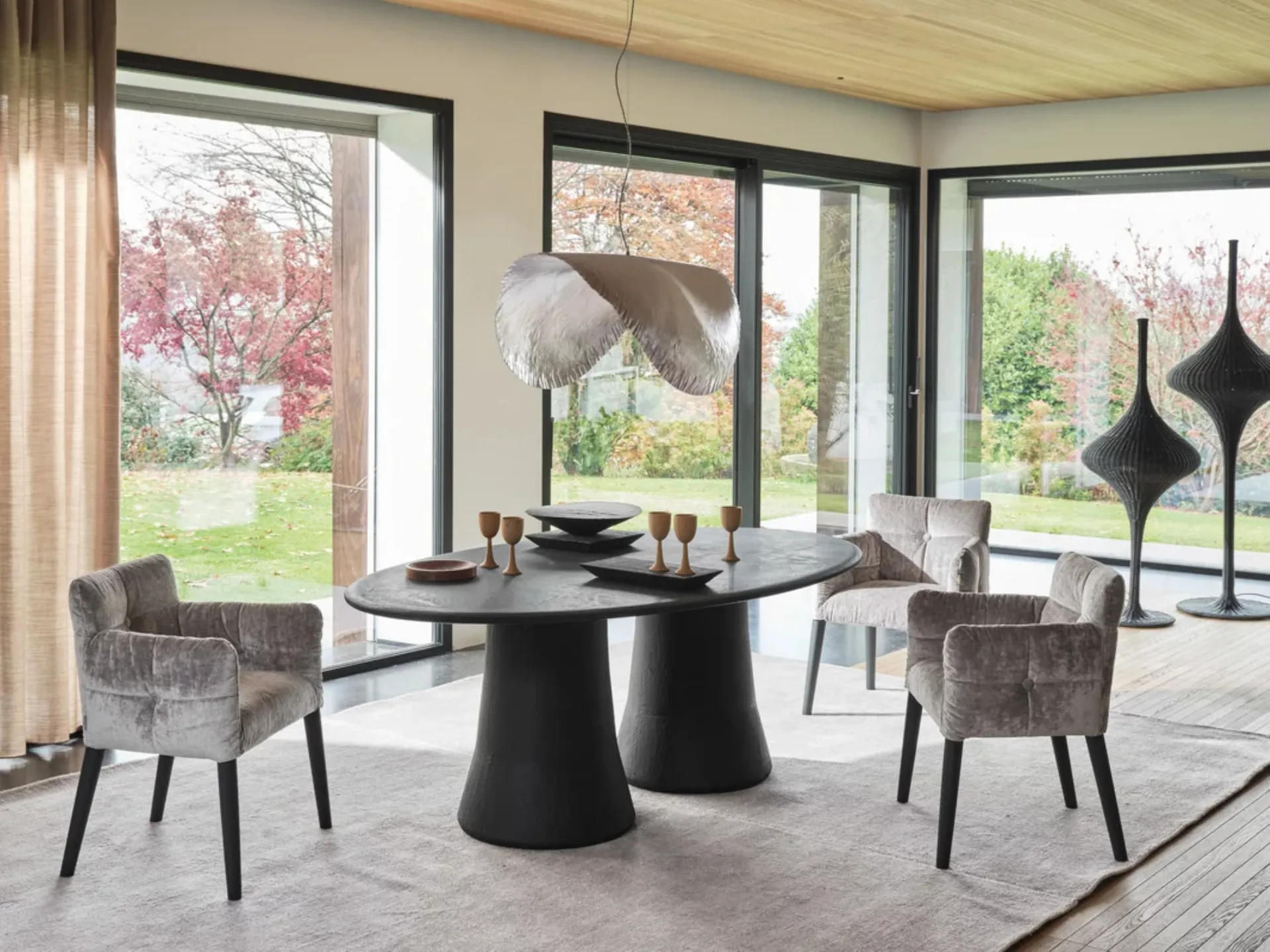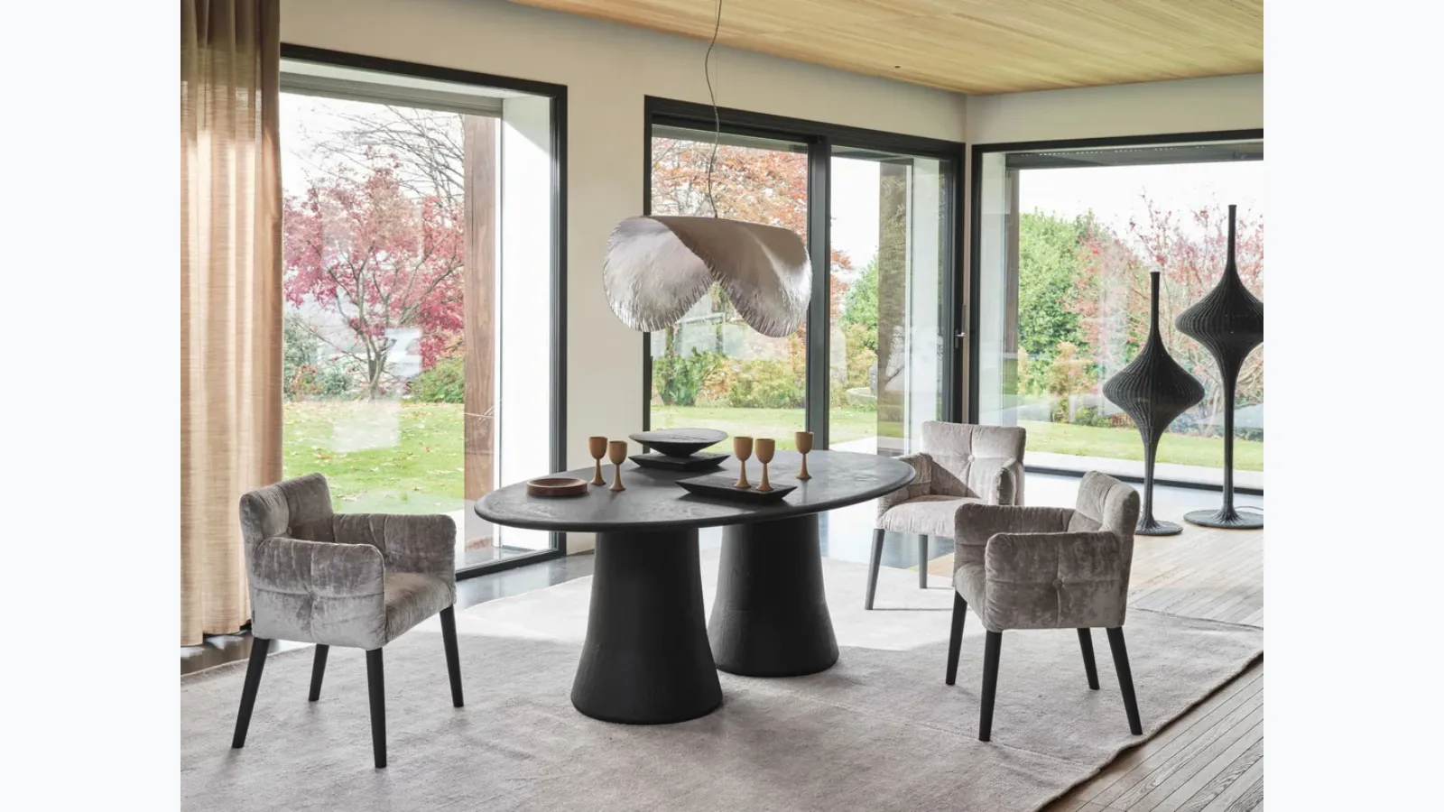 Tables are furnishing elements with which it is possible to enhance the living room, kitchen area or other rooms in the house, thanks to high-quality materials and imaginative color combinations. Tables are essential pieces of furniture in every home: complete your furnishing project and bring to life the house you have always dreamed of. Fixed models in textured materials, like the one visible in the photo, adapt to a variety of living contexts, being truly versatile and resistant. Fill out the form and contact us to discover the best furniture for your home from top manufacturers, including Gervasoni coffee tables and chairs. Oval table Mae 34 by Gervasoni: explore a rich catalog of dining room furniture and accessories to complete your rooms, with various possibilities for customization.