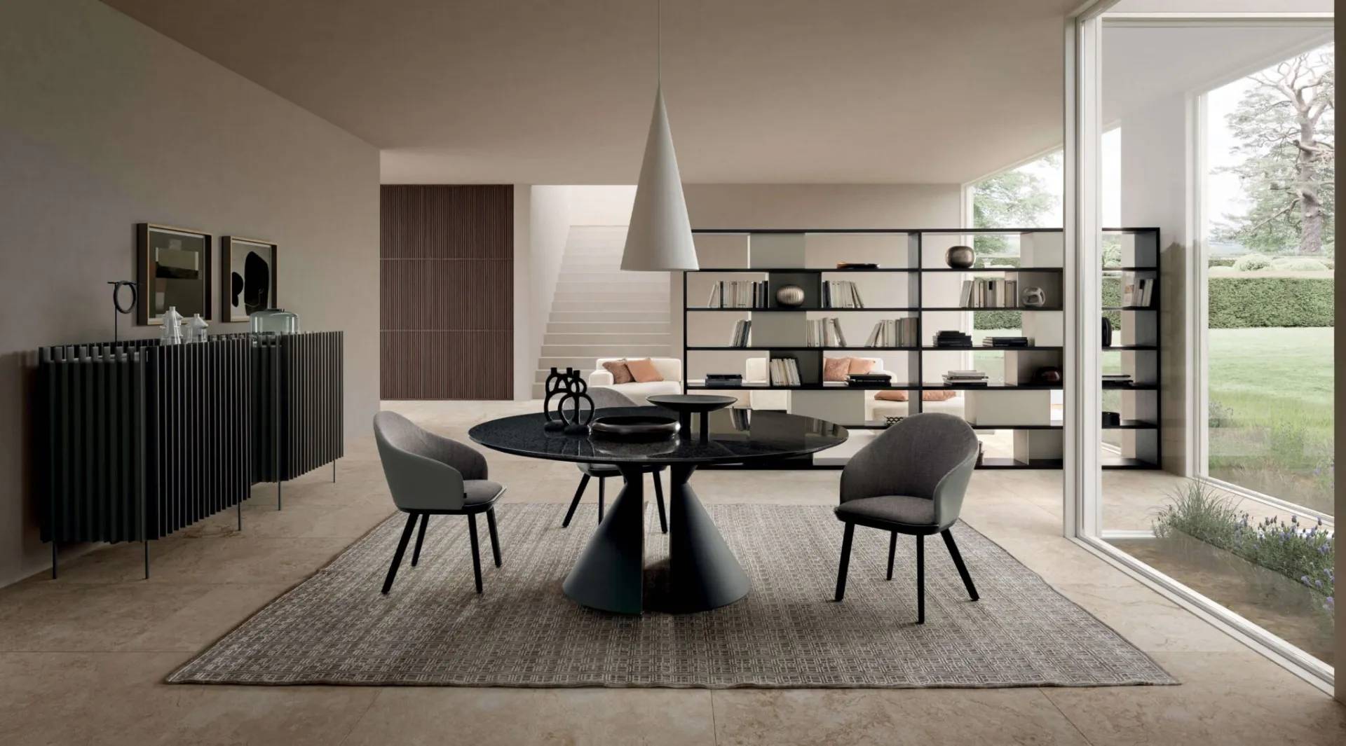 One of our fixed table models will be able to enrich your furnishing project with practicality and design. A respectable table must be made of precious materials, so that it is resistant and preserves over time the aesthetic value that characterizes it. Nimbo round table by Presotto: in the store awaits you an almost infinite range of compositions of great design. Tables are among the essential furniture and accessories of the living room and the kitchen, environments dedicated to hospitality where you socialize with family and friends. The exclusive brand Presotto offers a wide range of fixed dining tables, including those ideal for enhancing design spaces. If you want to ensure a high aesthetic content in domestic environments, but also make the most of the shape and dimensions of the rooms, then our solutions are perfect for you.