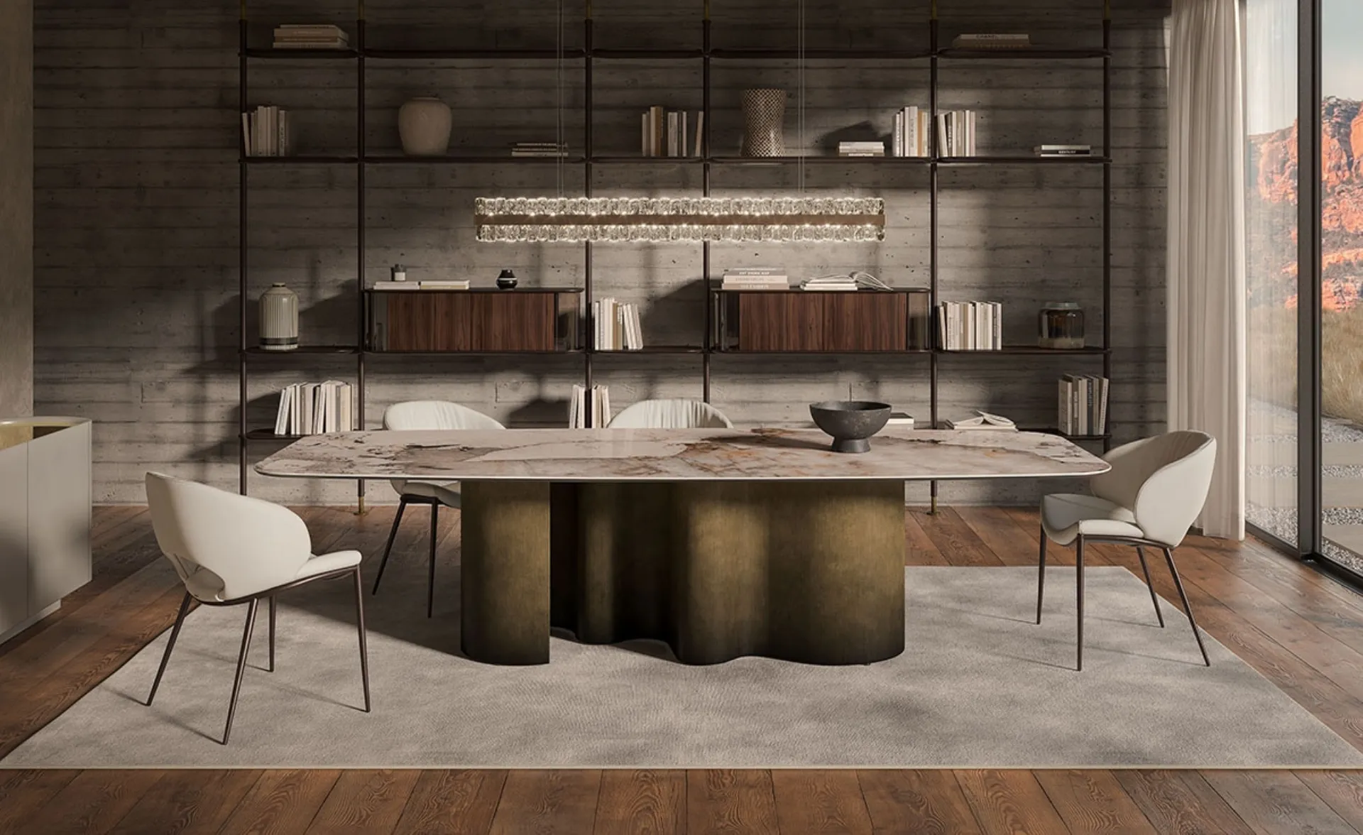Fixed ceramic models like the one shown in the photo adapt to a variety of spaces and living environments, being truly versatile and sturdy. Tables are furnishing components that can complete the living room, kitchen area, or other rooms in the house, thanks to durable materials and imaginative color combinations. Papel Keramik Table by Cattelan Italia offers a rich range of dining furniture and accessories to finish your spaces with different customization options. Tables are essential furnishings in every home: complete your furnishing project and bring to life the house you have always desired. Fill out the form and contact us to discover the best furniture brands, tables, and chairs under the Cattelan Italia brand.