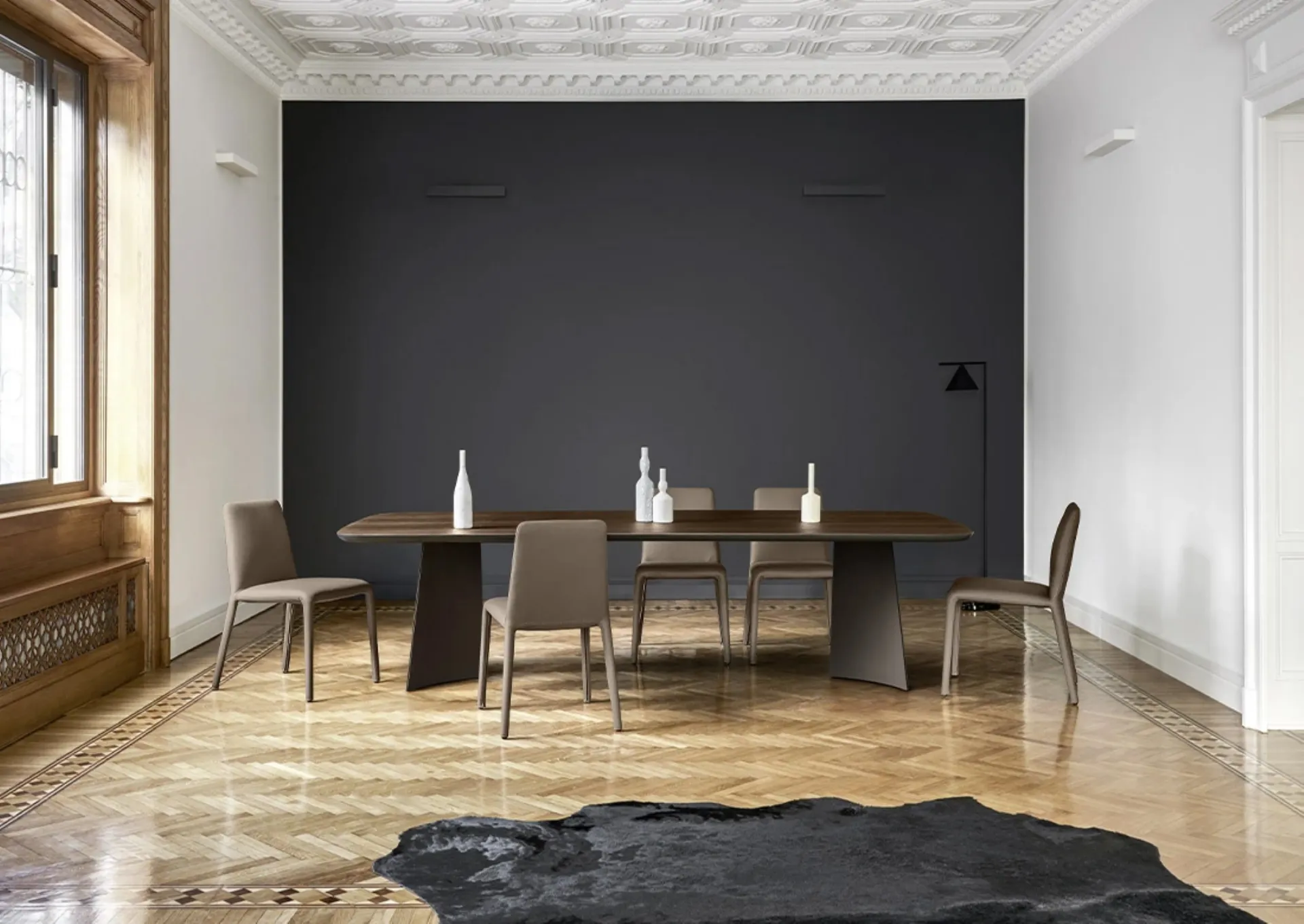 In our website dedicated to Home Furnishings you will find everything you need for the living room or kitchen area. In our showroom, you will find a wide range of fixed Tables from the best brands, including the dining model visible in the photo. When choosing the perfect table for you, it is necessary to evaluate dimensions, shapes, materials, and style, in order to optimize the space with a great aesthetic effect. Whether you want to renew the design pieces of furniture you have at home or buy them for the first time, you can touch and feel the most exclusive solutions on the market with us.