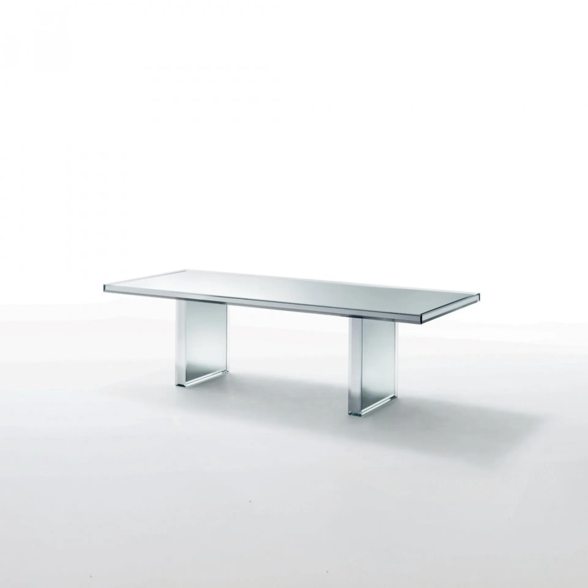 One of our fixed table models will enrich your furnishing concept with practicality and design. A respectable table must be made of precious materials, so that it is durable and preserves over time the aesthetic qualities that characterize it. Prism Mirror table by Glas Italia: in our store a wide choice of high-quality compositions is waiting for you. Tables are essential furniture and accessories for the living room and kitchen, spaces dedicated to conviviality where you gather with family and friends. If you want to ensure a high aesthetic content in your home environments, but also want to organize the interiors effectively, then our solutions are perfect for you. The exclusive brand Glas Italia offers a wide range of fixed dining tables, including those ideal for perfectly enhancing modern spaces.