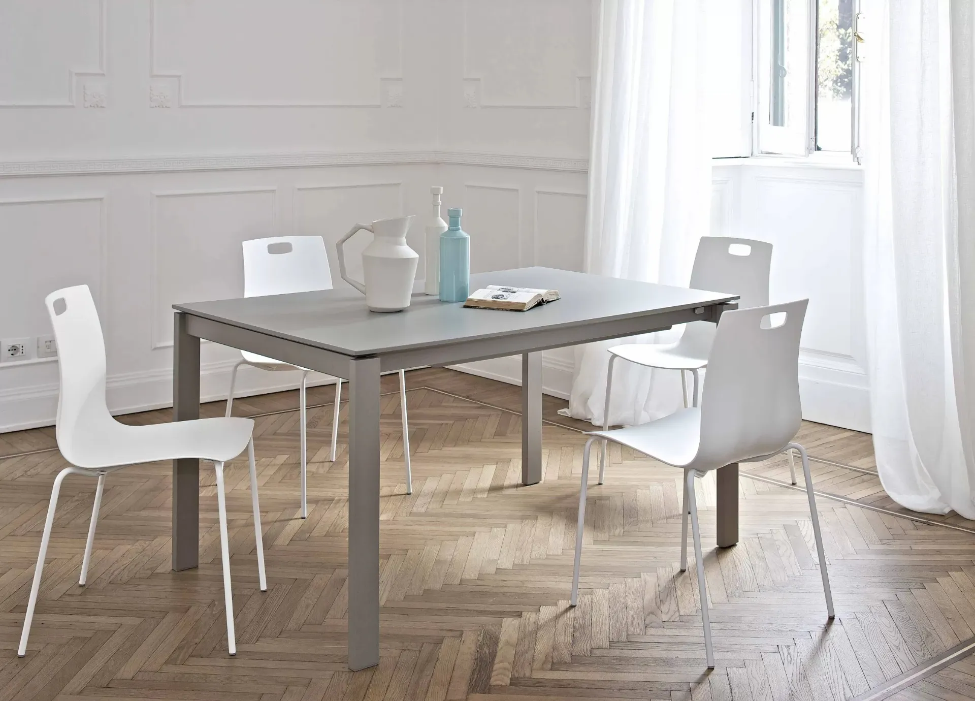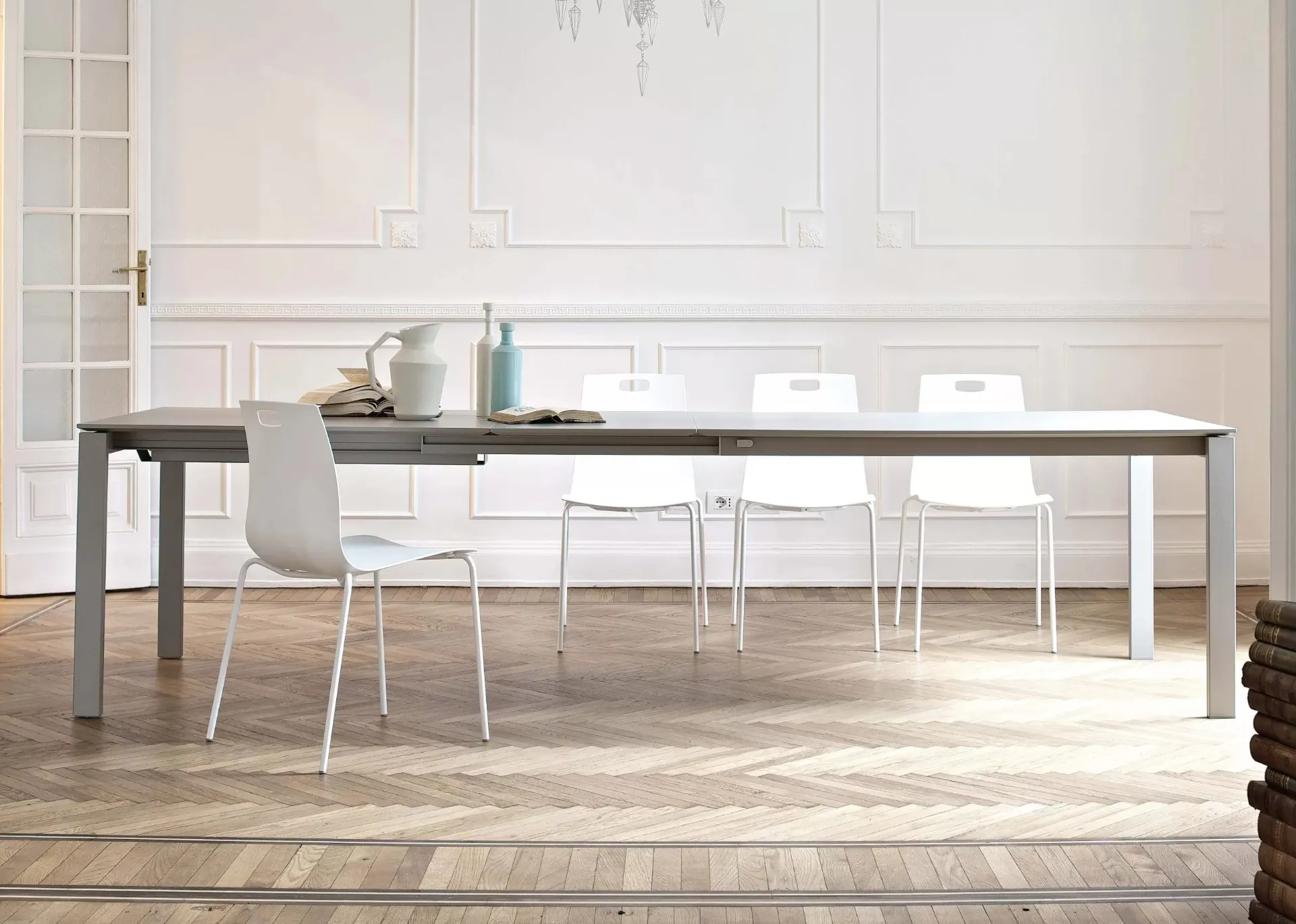 The renowned brand Ingenia, specializing in the production of melamine furniture, has chosen a wide range of materials, lines, and tones for its line. If you are looking for a kitchen table with great design, contact us and receive information and quotes on the model shown in the photo. A model like the one in the image, paired with the right seats, will enhance the mood of the rooms dedicated to conviviality. Extendable melamine table Reid by Ingenia: made of durable materials, it is characterized by the bold shapes of the top and an elegant and refined base. Ideal for creating unique combinations with modern seats and accessories, the company's extendable tables are among the most original solutions on the market, perfect for the living room and kitchen.