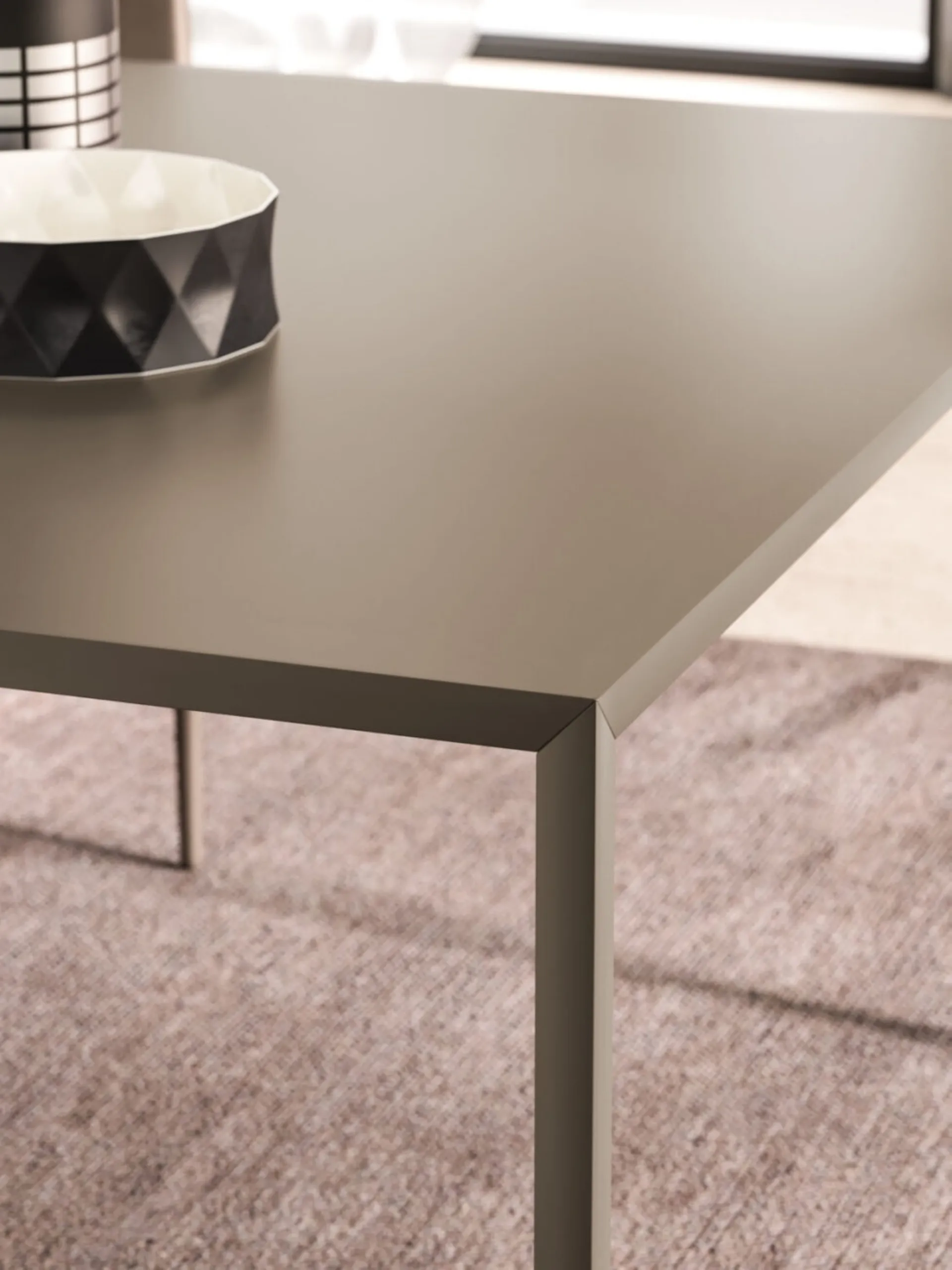 Tables are furnishing components with which you can enhance the living room, the kitchen area, or even other rooms of the house, thanks to quality materials and imaginative color combinations. Tables are essential furniture in every home: complete your furnishing project and bring your dream home to life. Fixed lacquered models like the one shown in the photo adapt to the most different spaces and living environments, being truly eclectic and resistant. Fill out the form and contact us to discover the best brands of Home Furnishings, coffee tables, and chairs branded Orme. Matte lacquered table in Argilla Slim by Orme: discover a wide range of furniture and kitchen accessories to complete your spaces counting on various customization possibilities.