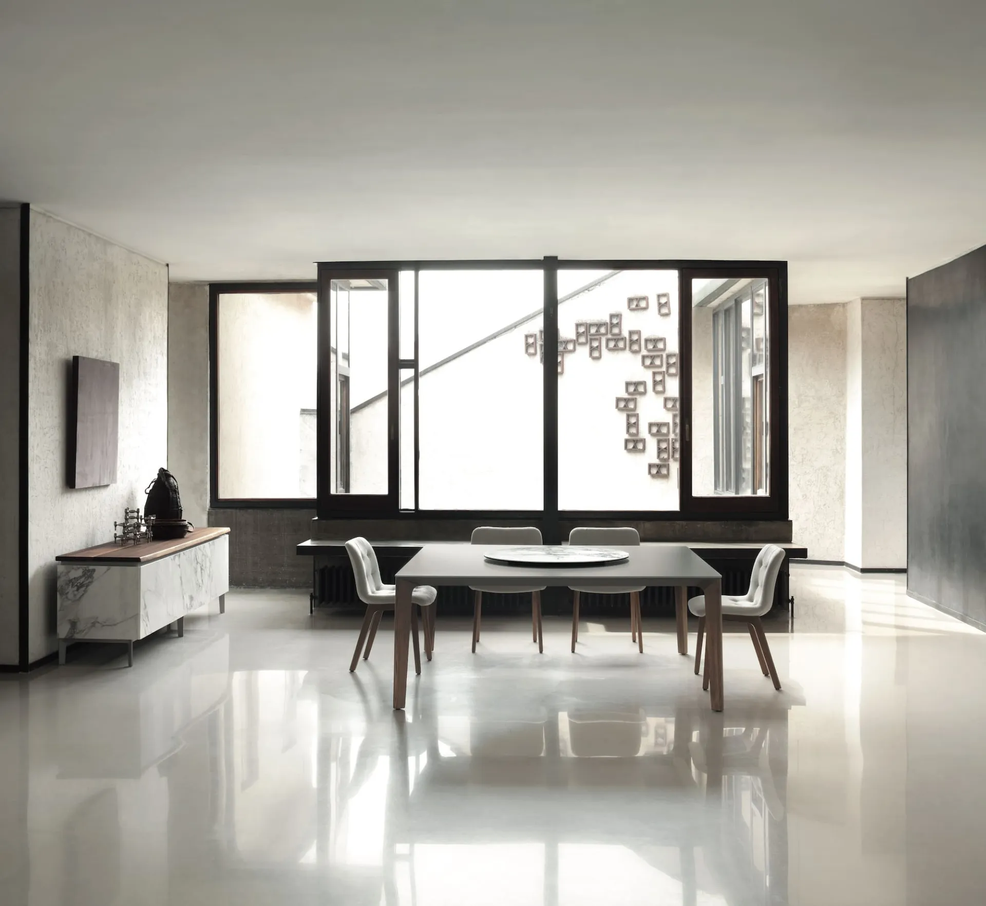 At our store, you will find a rich catalogue of fixed tables from the best brands, including the dining model featured in the photo. When choosing the table that suits you, it is necessary to consider measurements, shapes, materials, and style in order to organize the space with an excellent aesthetic result. Opt for furniture and glass accessories from top brands to complete your spaces with functionality without ever neglecting aesthetics. Whether you want to replace modern pieces of furniture in your home or buy them for the first time, you can personally view the most beautiful solutions on the market. In our dedicated Home Furnishings website, you will find everything you need for the living area or kitchen.