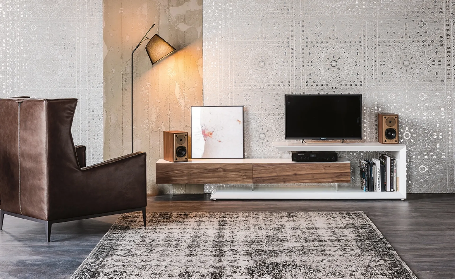 The TV cabinets, if carefully selected, serve to complete your living room by acting as a multifunctional support surface for various objects, the TV and more. Useful and of high aesthetic value, our Cattelan Italia lacquered wood TV cabinets for design environments will optimize the spaces enhancing their beauty. Whether you want to store the television, books or various objects, a cabinet like the one shown in the photo will personalize the interior spaces embellishing them. In the living room, we need furniture that accompanies us in our daily lives at home, facilitating the everyday gestures we make and creating unique atmospheres. The model in the photo belongs to the line of Cattelan Italia lacquered wood design TV cabinets: in the store you will find only the most beautiful proposals on the market.